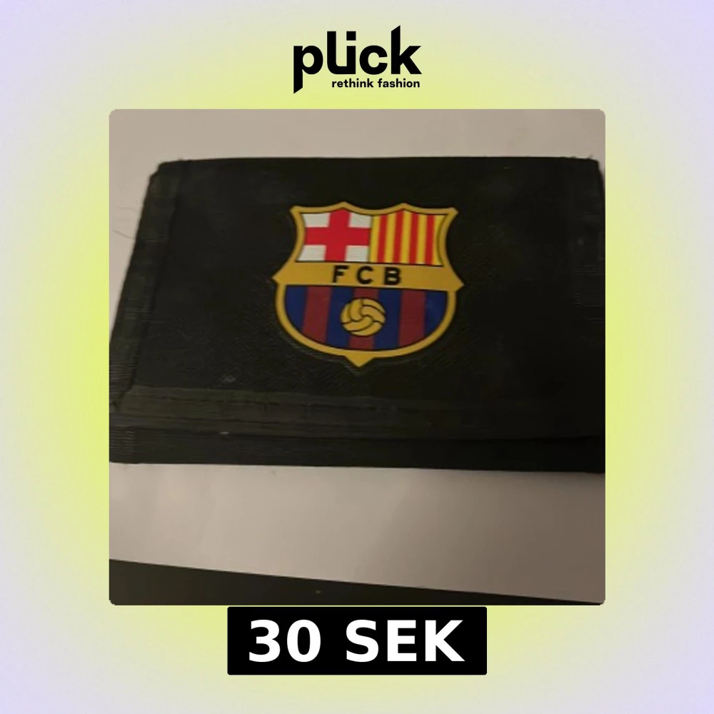 Svart plånbok med FC Barcelona-logga på framsidan. Praktisk design med flera fack för kort och mynt, samt dragkedja på insidan. Perfekt för dig som vill visa vilket lag du hejar på och samtidigt hålla koll på dina grejer.