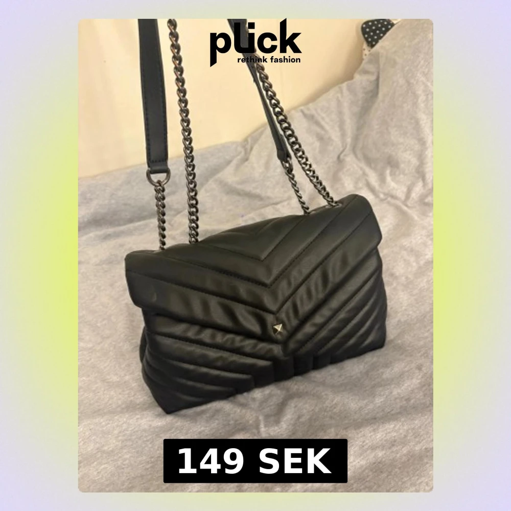Snygg svart axelväska med quiltad design och silverfärgad kedja som axelrem.