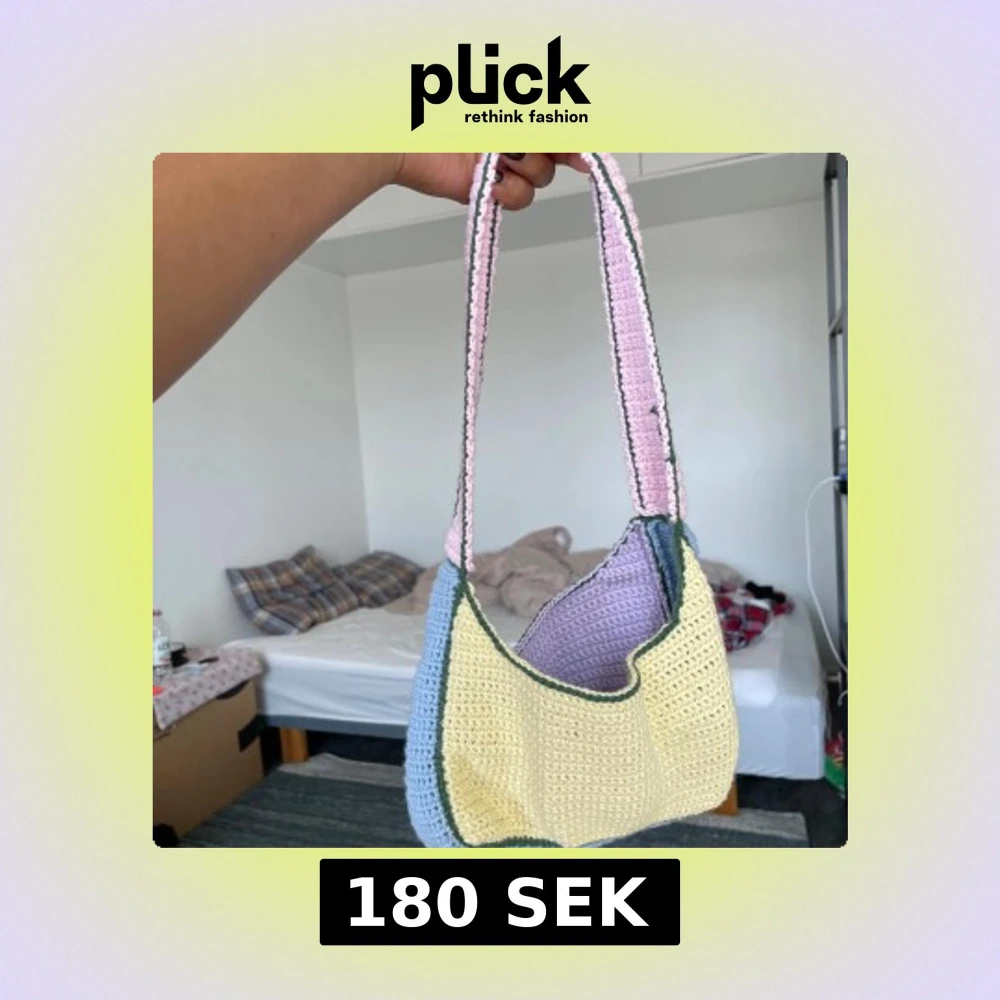 Superfin axelväska i virkade pastellfärger. Perfekt för dig som vill ha en unik och färgglad accessoar till din outfit.🫶🏼