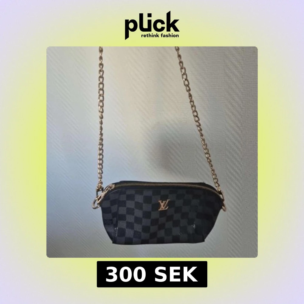 Snygg svart axelväska med klassiskt rutigt mönster och guldfärgad kedja. Väskan har en dragkedja upptill och är perfekt för att bära dina viktigaste saker med stil.