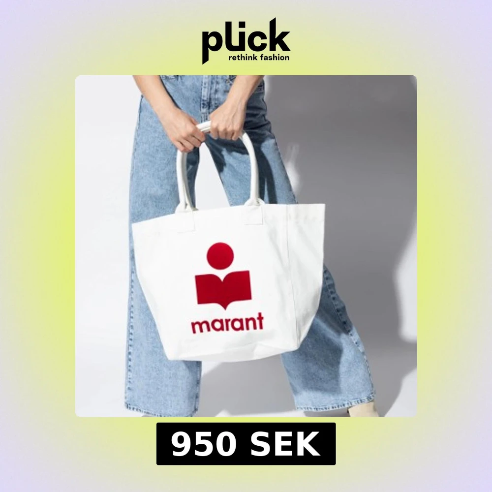 Snygg vit shoppingväska från Isabel Marant med rött tryck på framsidan. nypris är 2200, priset är diskuterbart