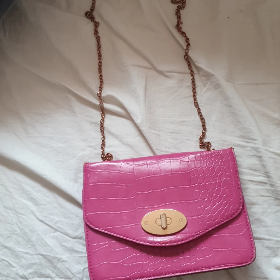 En typ mörk rosa väska som är använd 2 gånger men lite färg som är borta.