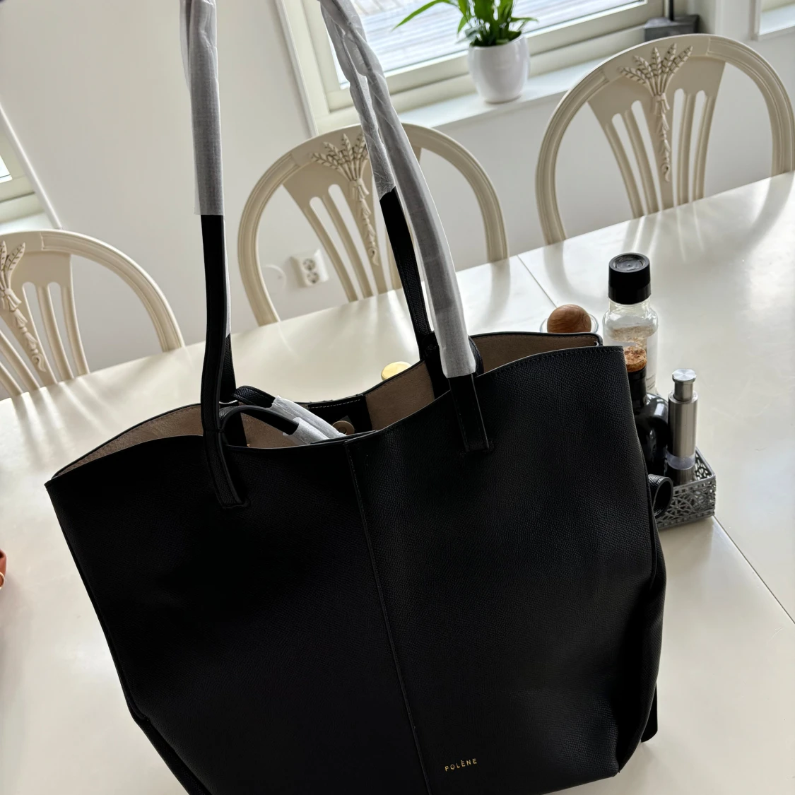 Superfin polene-lik väska, aldrig använd. Plast och lapp sitter kvar. Kommer med dustbag. Bra och tjockt läder-material.
