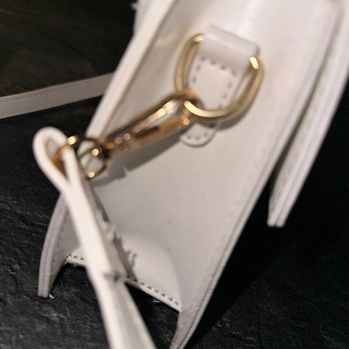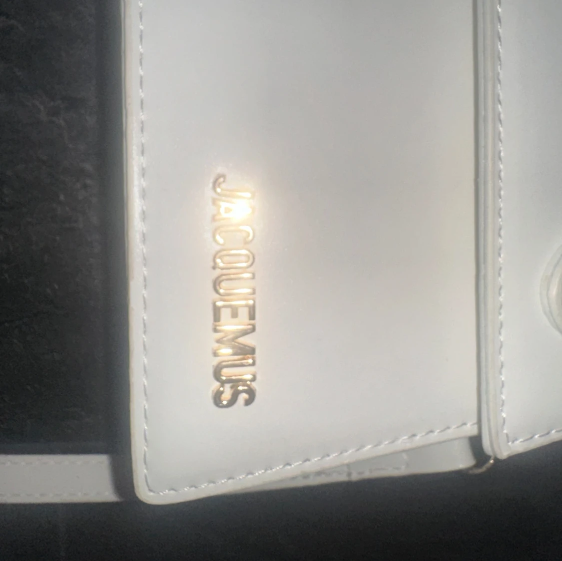 Superfin vit handväska från Jacquemus i slät skinn med guldiga metalldetaljer och logga framtill. Klassisk miniform med topphandtag och avtagbar axelrem. Perfekt för dig som gillar stilrena accessoarer med lyxig känsla.