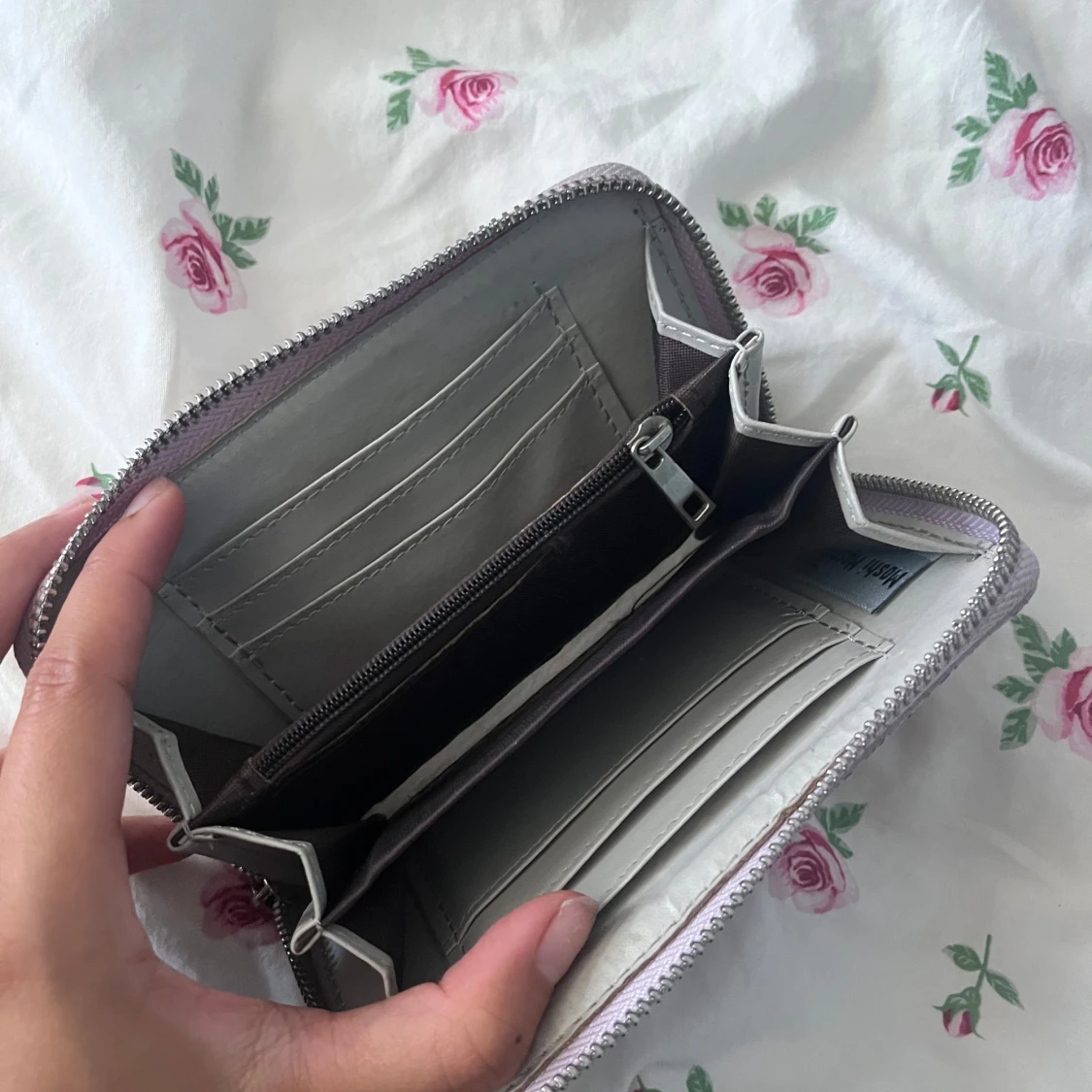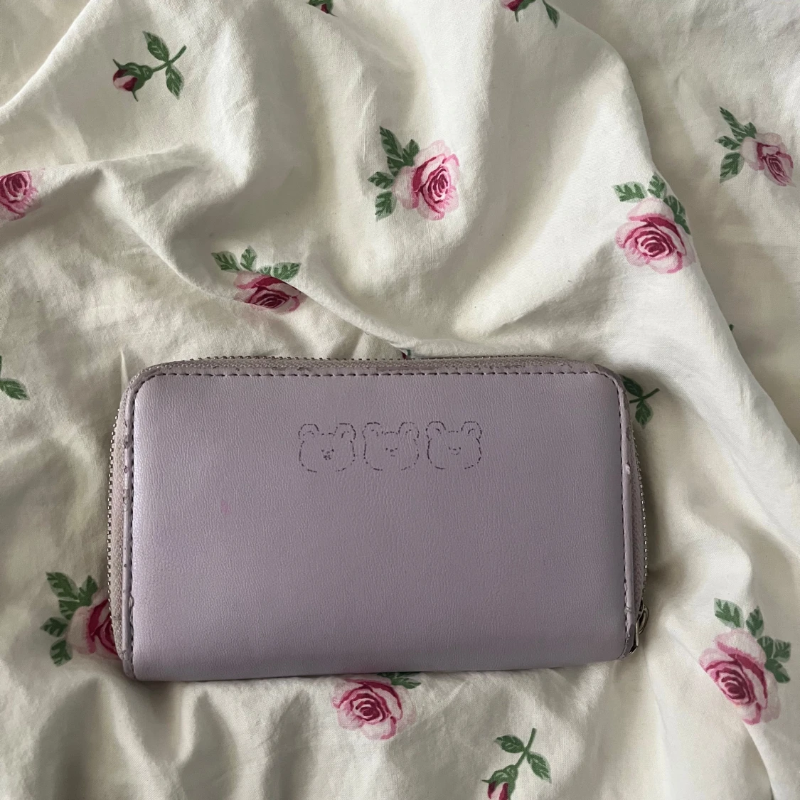Superfin ljuslila plånbok med dragkedja runtom och tre små björnar ingraverade på framsidan. Insidan har flera fack för kort och ett myntfack med dragkedja. Perfekt storlek för att ha med sig överallt och håller dina grejer organiserade.