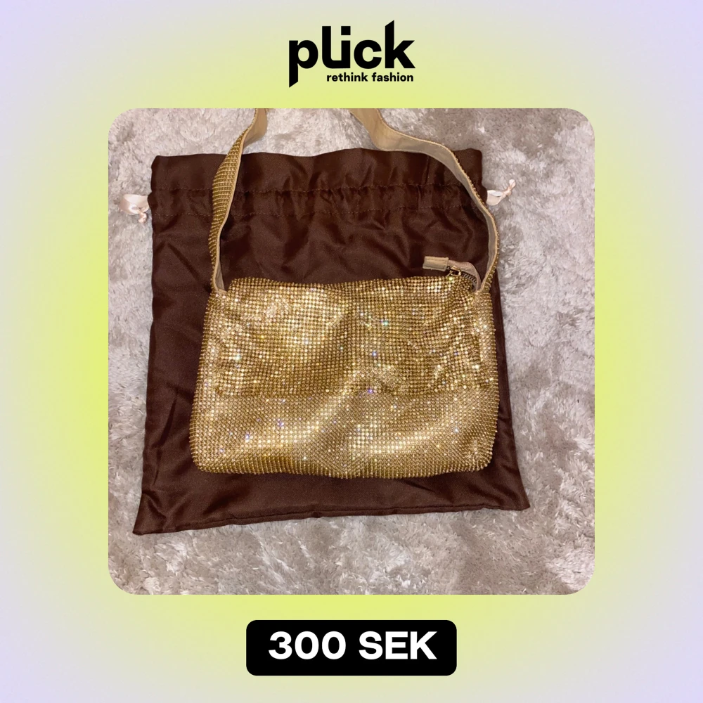 Säljer en superfin glittrig guldväska från Bianca x Nelly.com. Perfekt för fest eller nyår! Väskan har en dragkedja och är i mycket bra skick. Den kommer med en praktisk brun förvaringspåse. Använt denna en gång, sedan dess har den legat i sin dustbag.