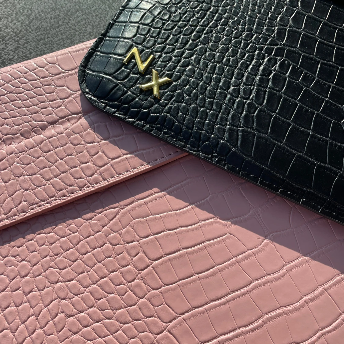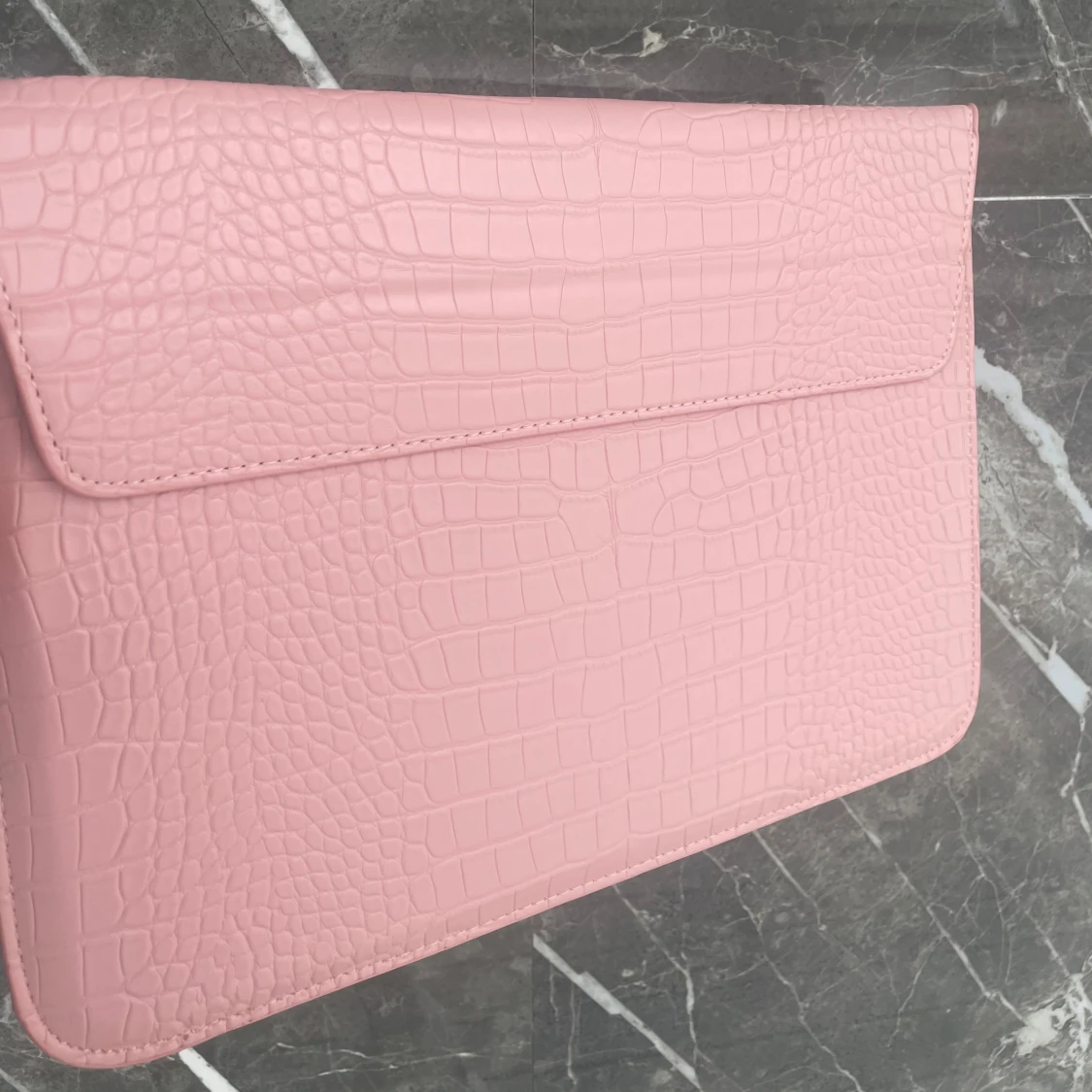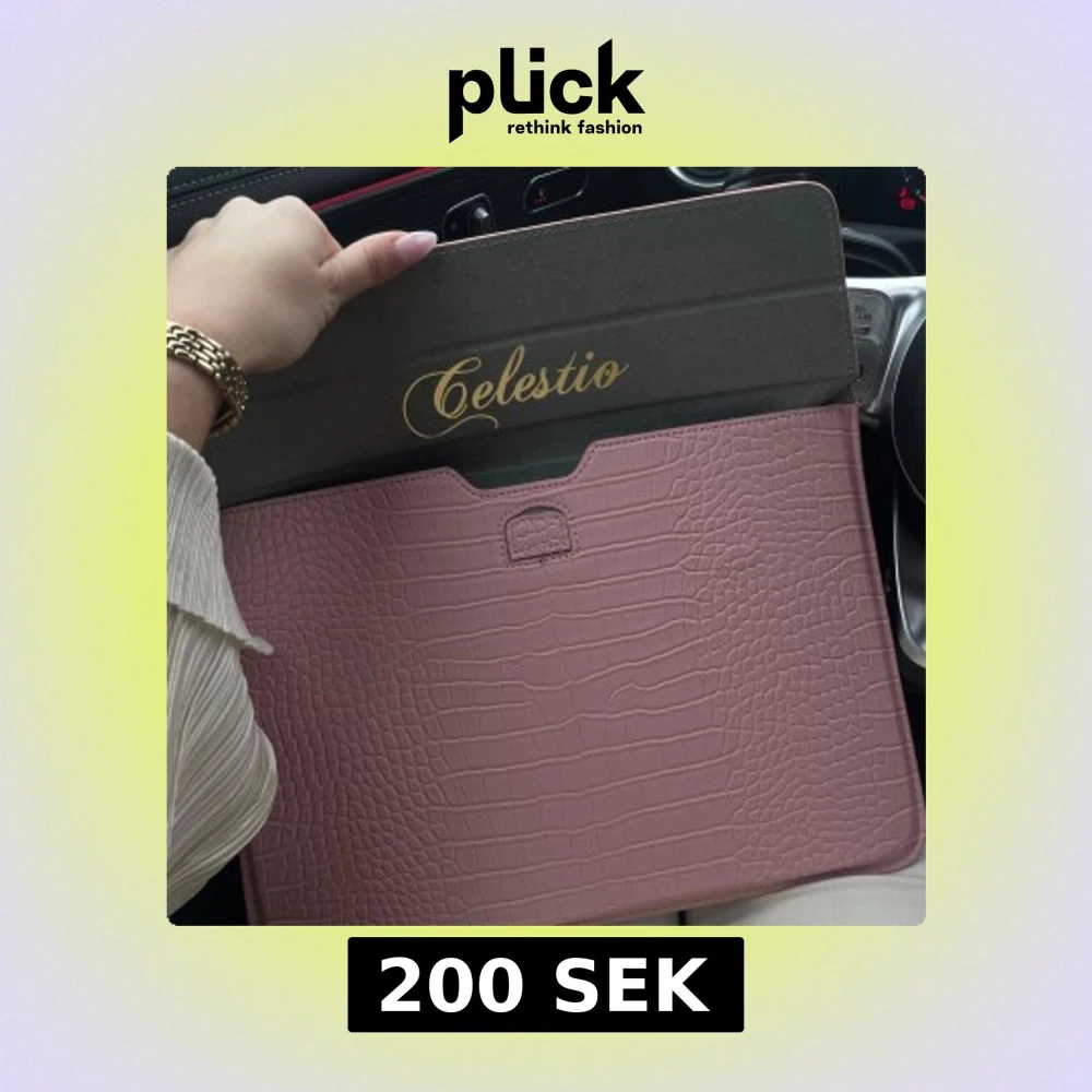 Säljer en stilren datorväska från Celestio i ljusrosa med croco-mönstrad yta. Väskan är tunn och smidig, perfekt för att bära din laptop. Tillverkad i syntetmaterial med elegant finish och magnetisk stängning. Snygg accessoar för plugget eller jobbet.