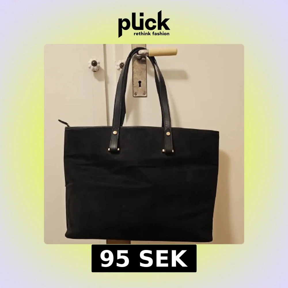 Stilren svart axelväska med rejäla handtag i skinn och diskreta guldfärgade detaljer. Väskan har en klassisk, fyrkantig form och gott om plats för allt du behöver till skolan eller stan. Perfekt för dig som gillar enkel och tidlös design. Om man vill ha fler bilder är det bara att skriva.