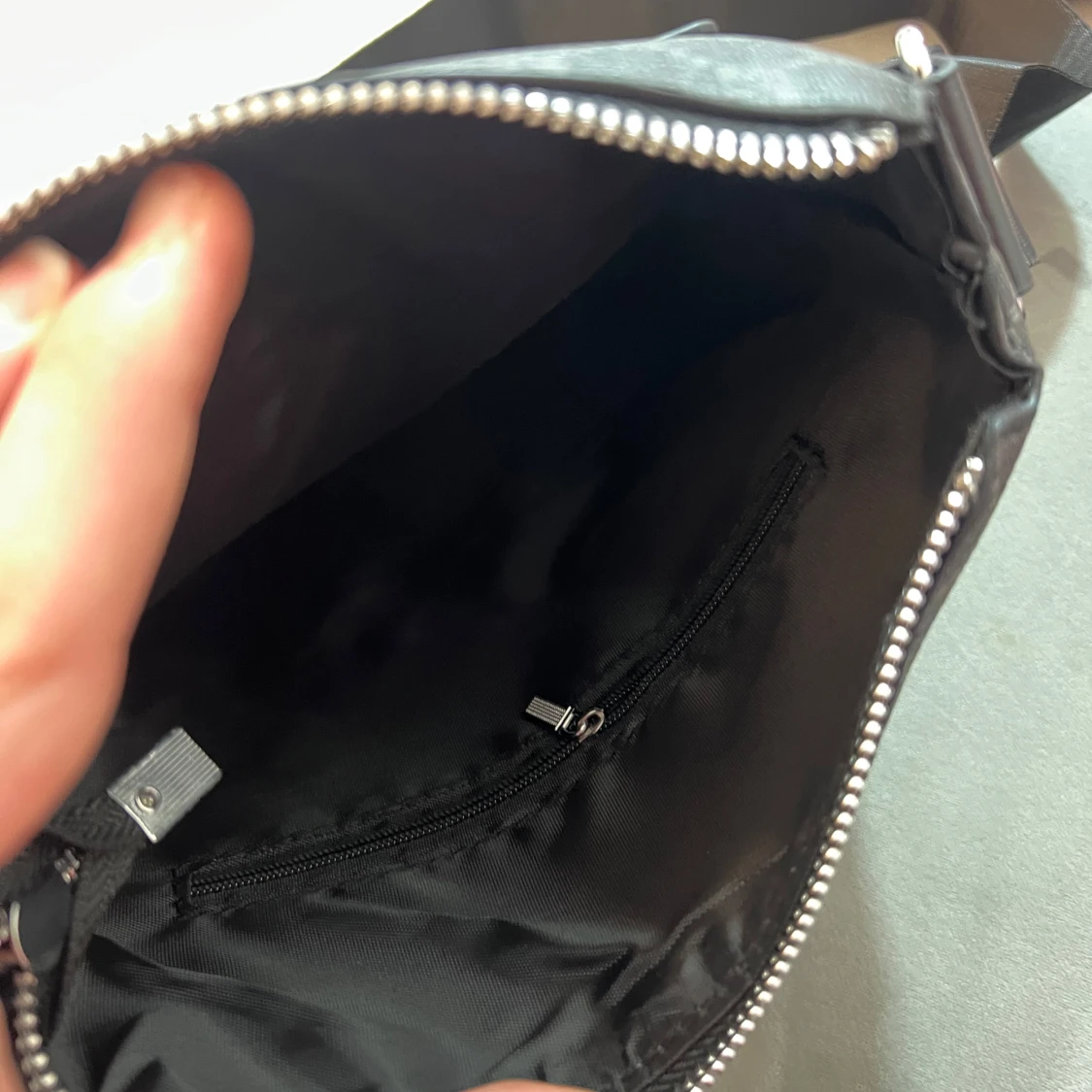 Snygg svart axelväska med silverfärgad dragkedja framtill. Perfekt för att bära med sig det viktigaste i vardagen.