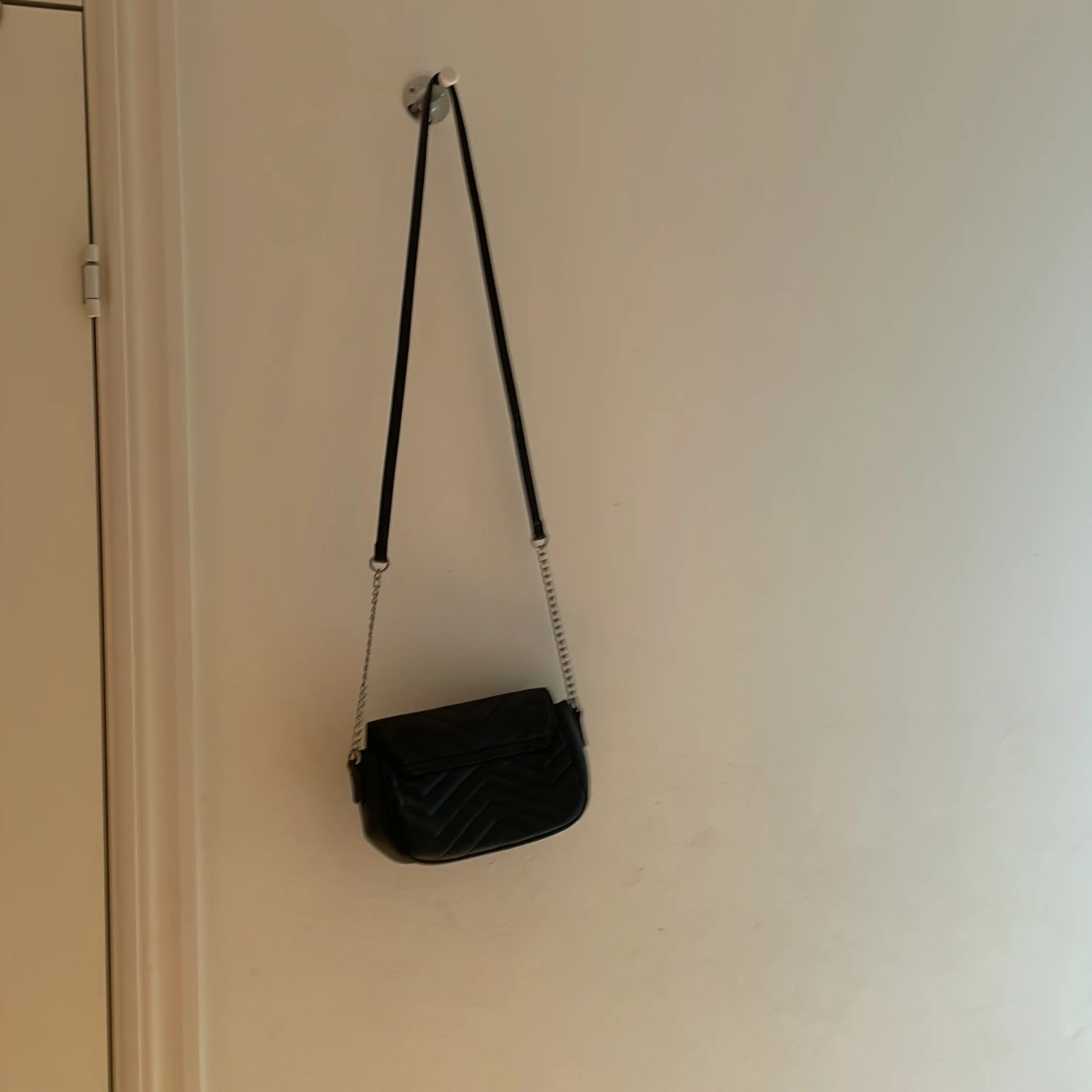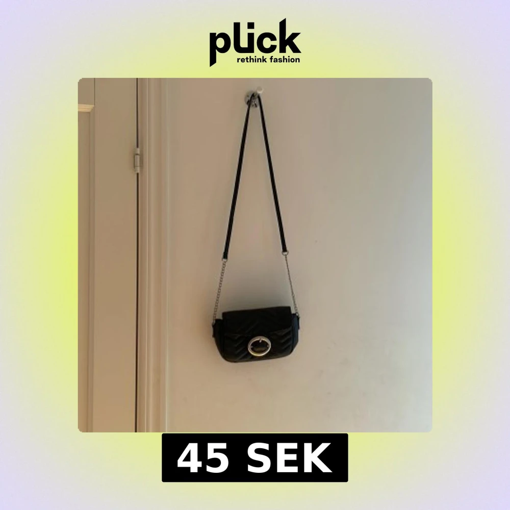Snygg svart axelväska i quiltat skinn med silverfärgad kedja och axelrem i läder. Väskan har ett stort spänne framtill i silver och lockstängning. Perfekt storlek för det viktigaste och ger en cool vibe till din outfit.