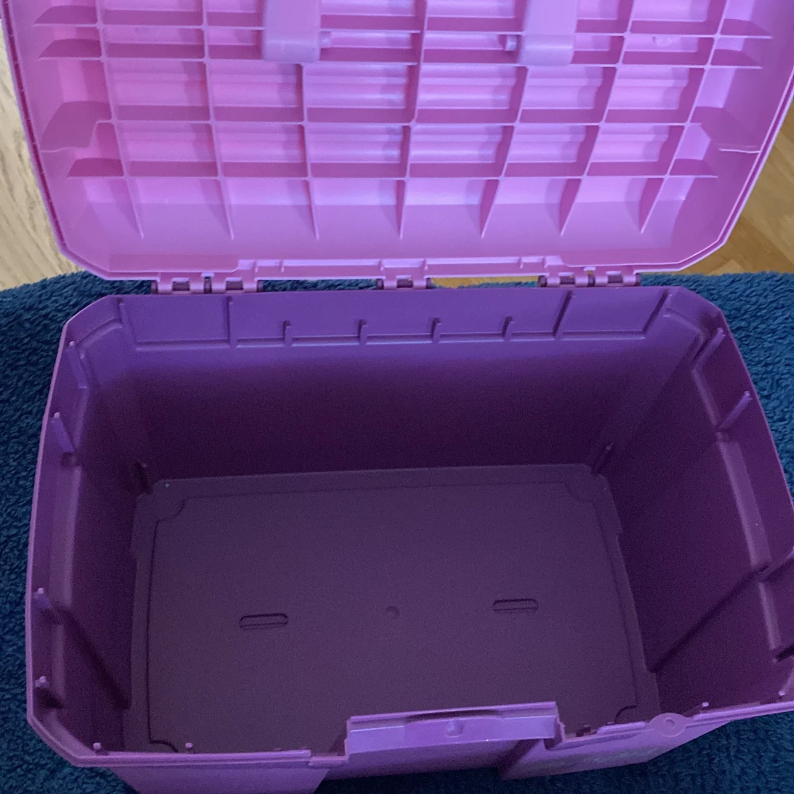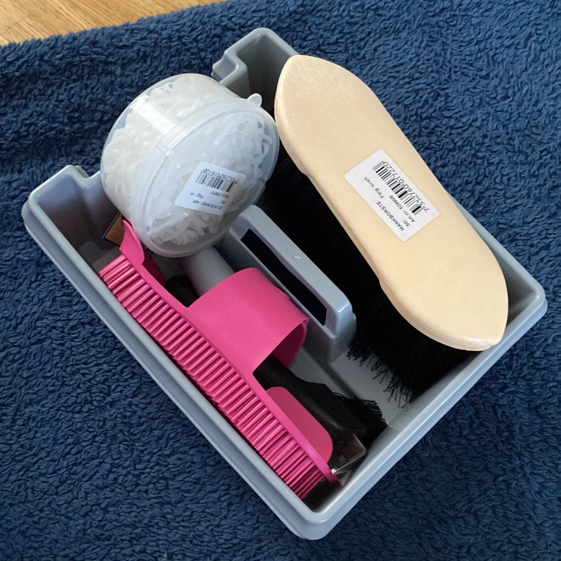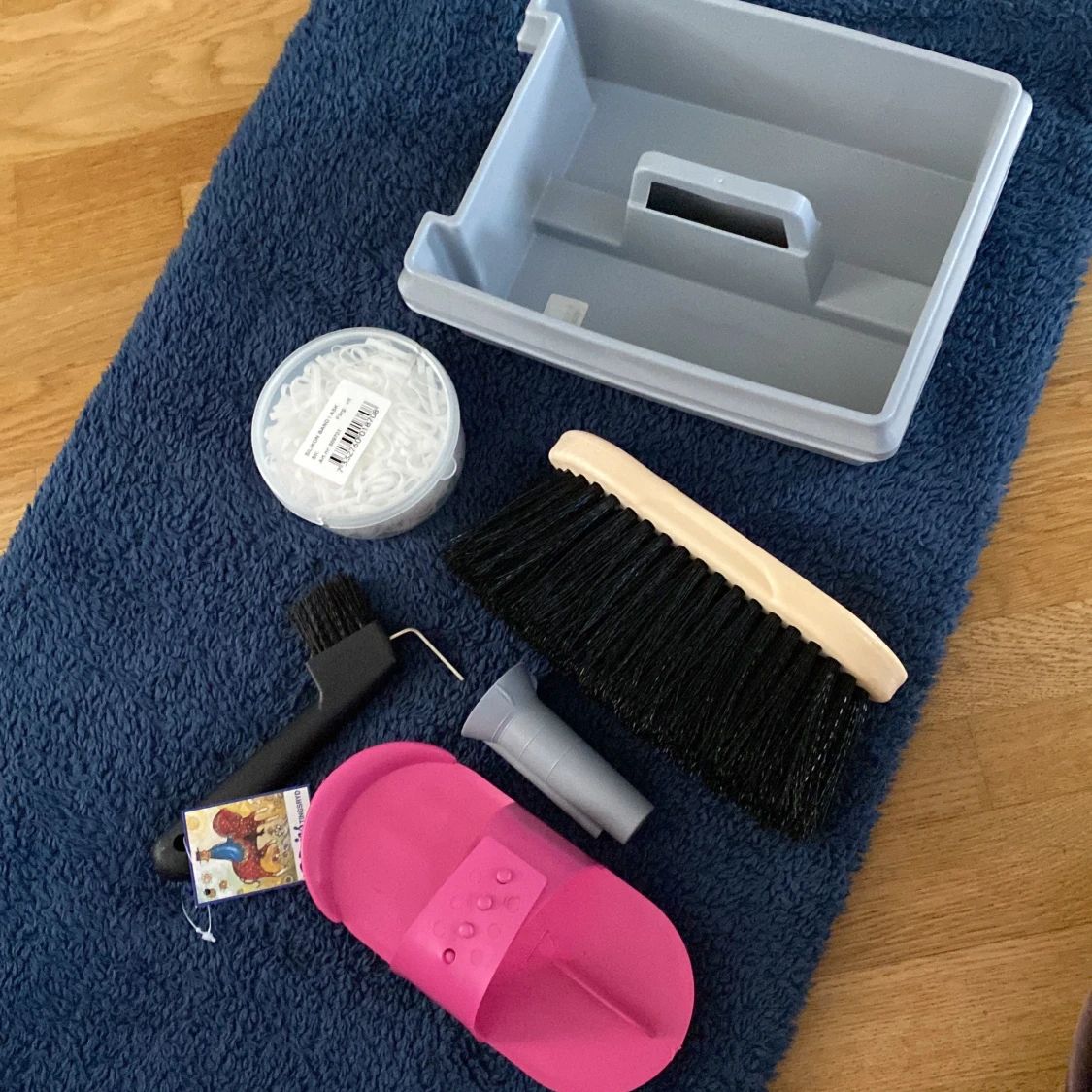 Stor och rymlig lila ryktväska från Börjes med praktiskt handtag och robust plastmaterial. Perfekt för att organisera borstar och tillbehör till stallet. Väskan har ett innerfack och gott om plats för allt du behöver till hästen. Den är helt oanvänd och alla tillbehör med. Frakt ingår inte i priset men dock kan pris diskuteras för varan.