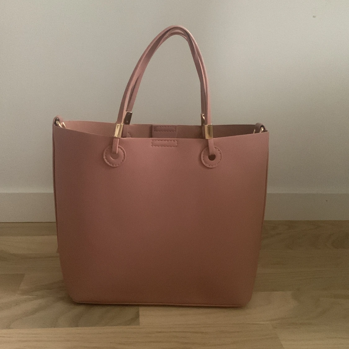 Snygg rosa axelväska i stilren design med både handtag och axelrem. Väskan har guldfärgade metalldetaljer och en praktisk innerficka med dragkedja. Nypris 485kr köpt i Norge, mitt pris 450, jag tar emot bud