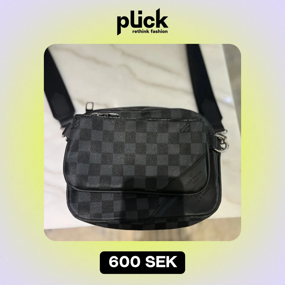 Snygg och stilren axelväska i svart och grått med klassiskt rutigt mönster. Väskan har en justerbar rem och praktiska dragkedjor har endast använt den några fåtal gånger under sommaren men inte mycket mer än så 1:1K