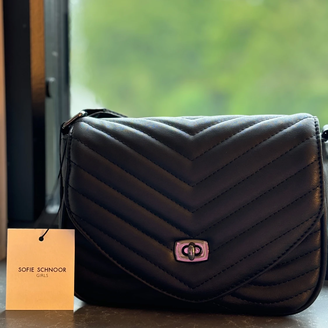 Helt ny stilren svart axelväska från Sofie schnoor.Nypris 579 säljer för 380 . Väskan har ett silverfärgat spänne framtill och justerbar axelrem.