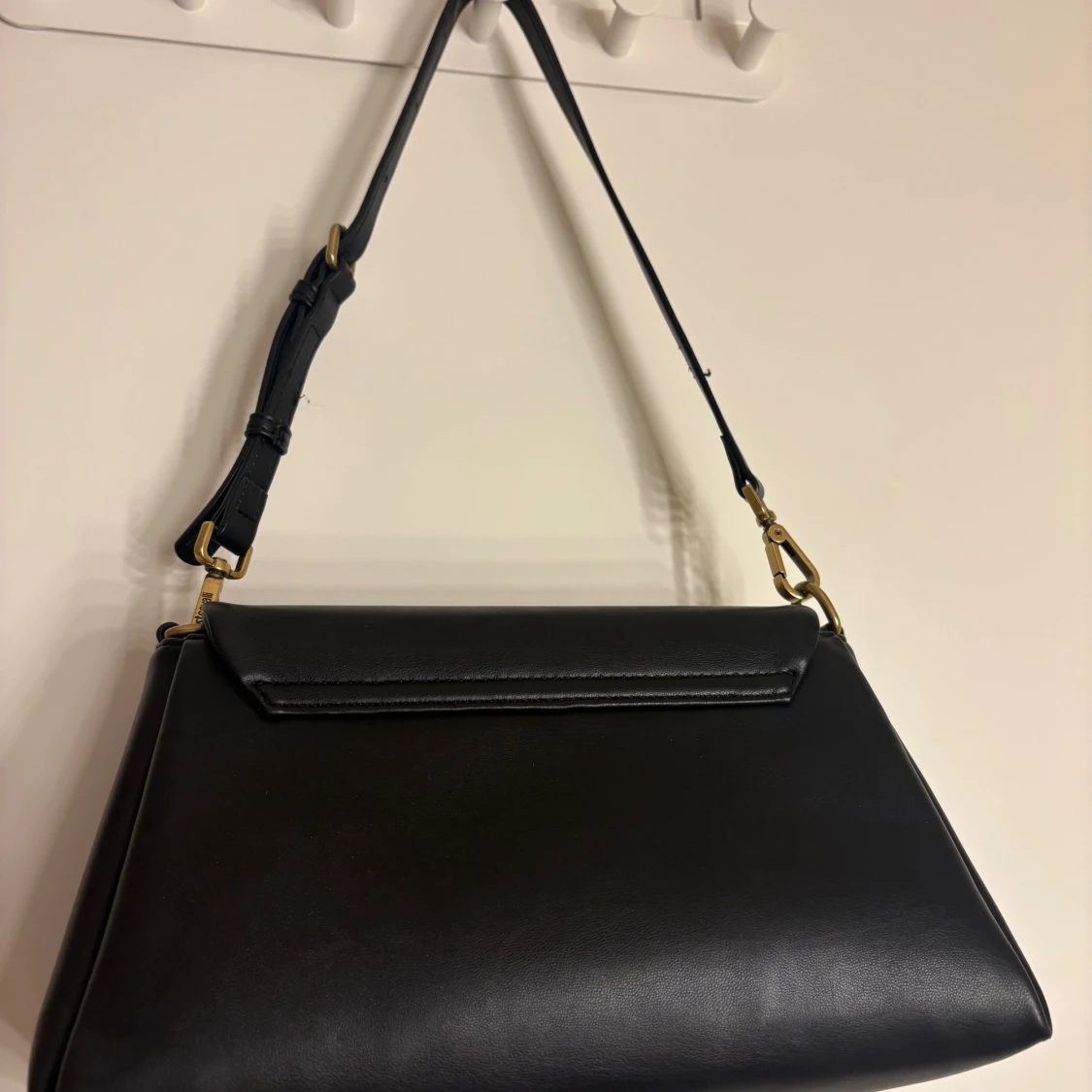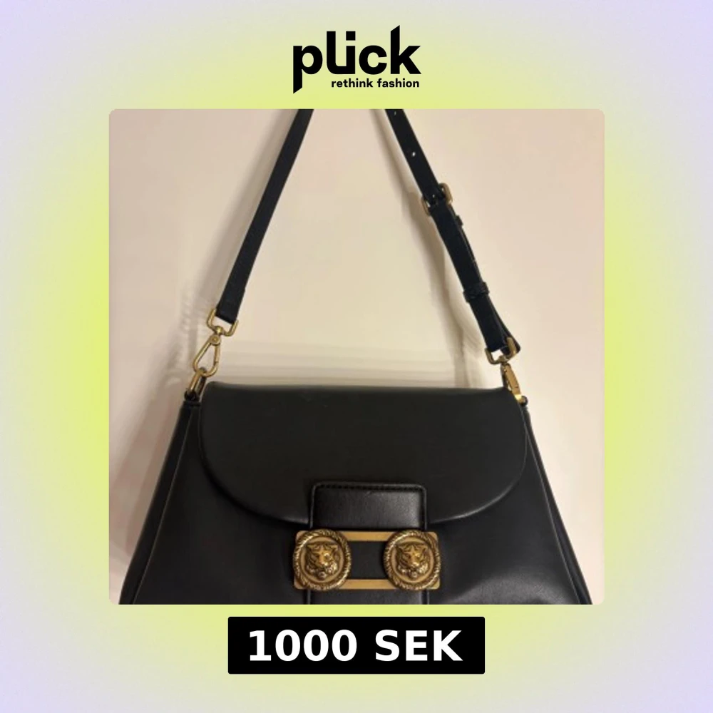 Snygg svart axelväska från Just Cavalli i skinn med guldfärgade metalldetaljer och coolt spänne framtill. Väskan har justerbar axelrem och stilren, klassisk form som passar till många outfits. Perfekt för dig som vill ha en statementväska med lyxig känsla.
