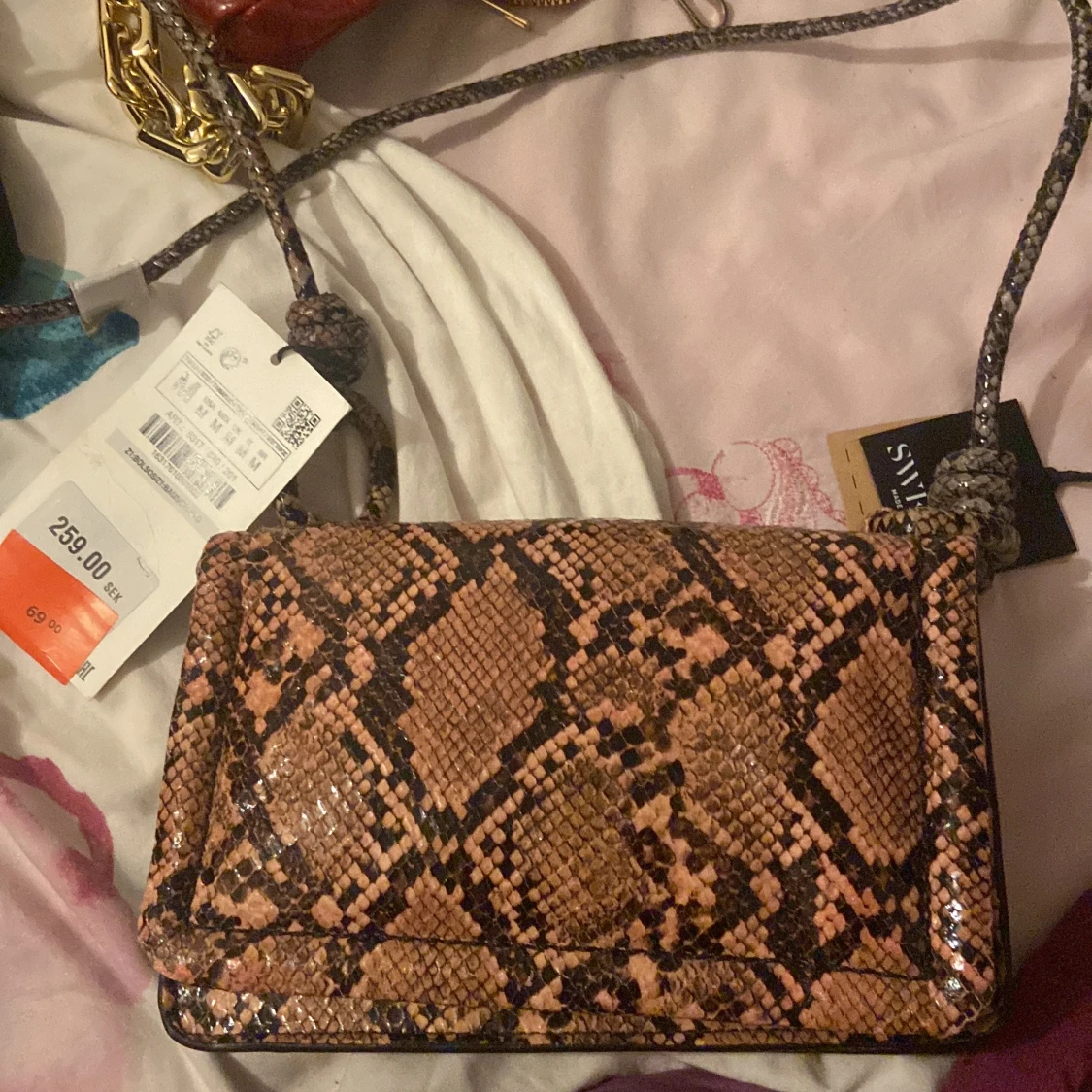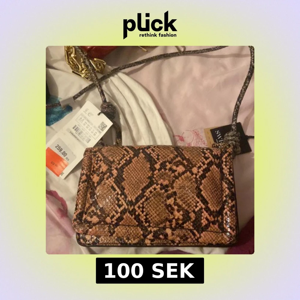 Snygg axelväska med ormmönster i bruna och svarta toner. Väskan har en justerbar axelrem och en praktisk storlek för vardagsbruk. Perfekt för att ge din outfit en trendig touch.