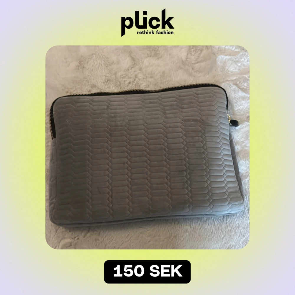 Säljer en stilren grå quiltad datorväska i mycket bra skick. Den har en praktisk dragkedja i guld som ger en snygg kontrast. Perfekt för att skydda din laptop med stil. Passar både till vardags och på kontoret!