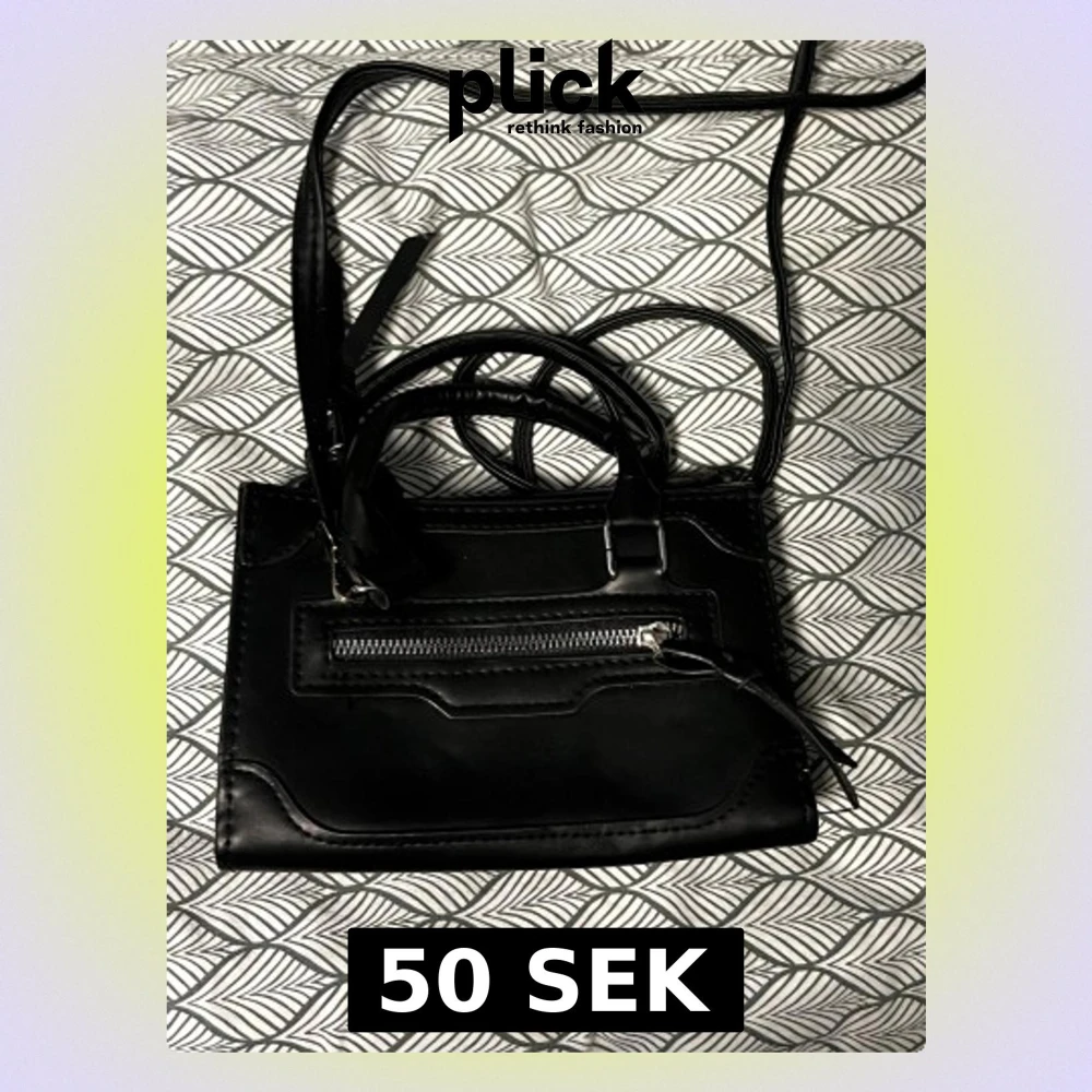Snygg svart axelväska i skinnimitation med både handtag och lång axelrem. Väskan har en praktisk dragkedja framtill och stilrena detaljer. Perfekt storlek för det viktigaste och passar till många olika outfits.