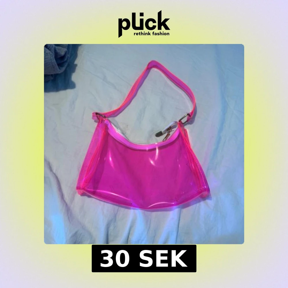 Säljer en cool transparent rosa axelväska med dragkedja. Perfekt för att bära med sig det viktigaste och samtidigt visa upp sin stil. Väskan har en enkel design med justerbart axelband.