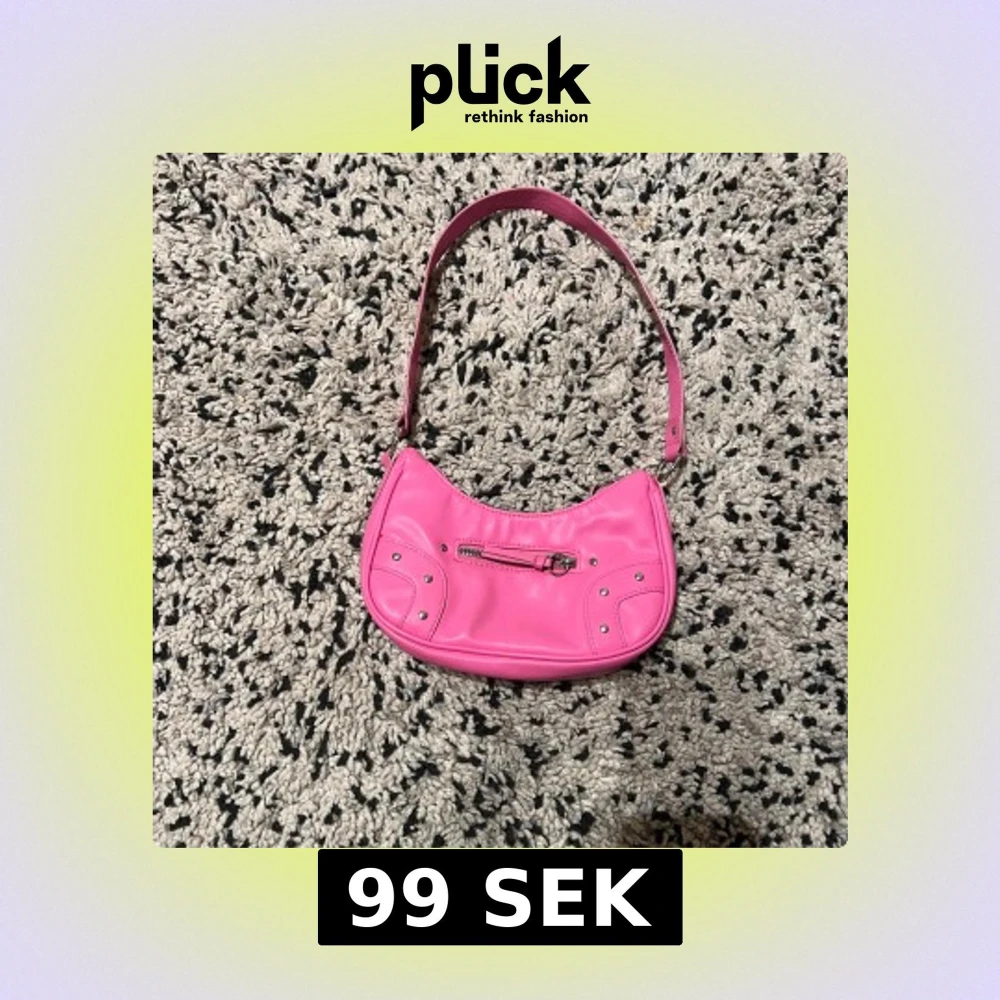 Säljer en snygg rosa axelväska i skinnimitation med silvriga nitar och en liten dragkedjeficka framtill. Väskan har en kort axelrem och coola detaljer som ger den en trendig vibe. Perfekt storlek för det viktigaste och passar till många outfits. Jag tror att väskan är köpt på Kappahl dock vet jag inte säkert eftersom jag har klippt av lappen inuti