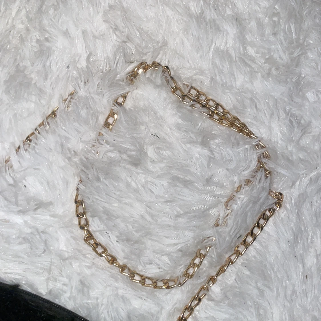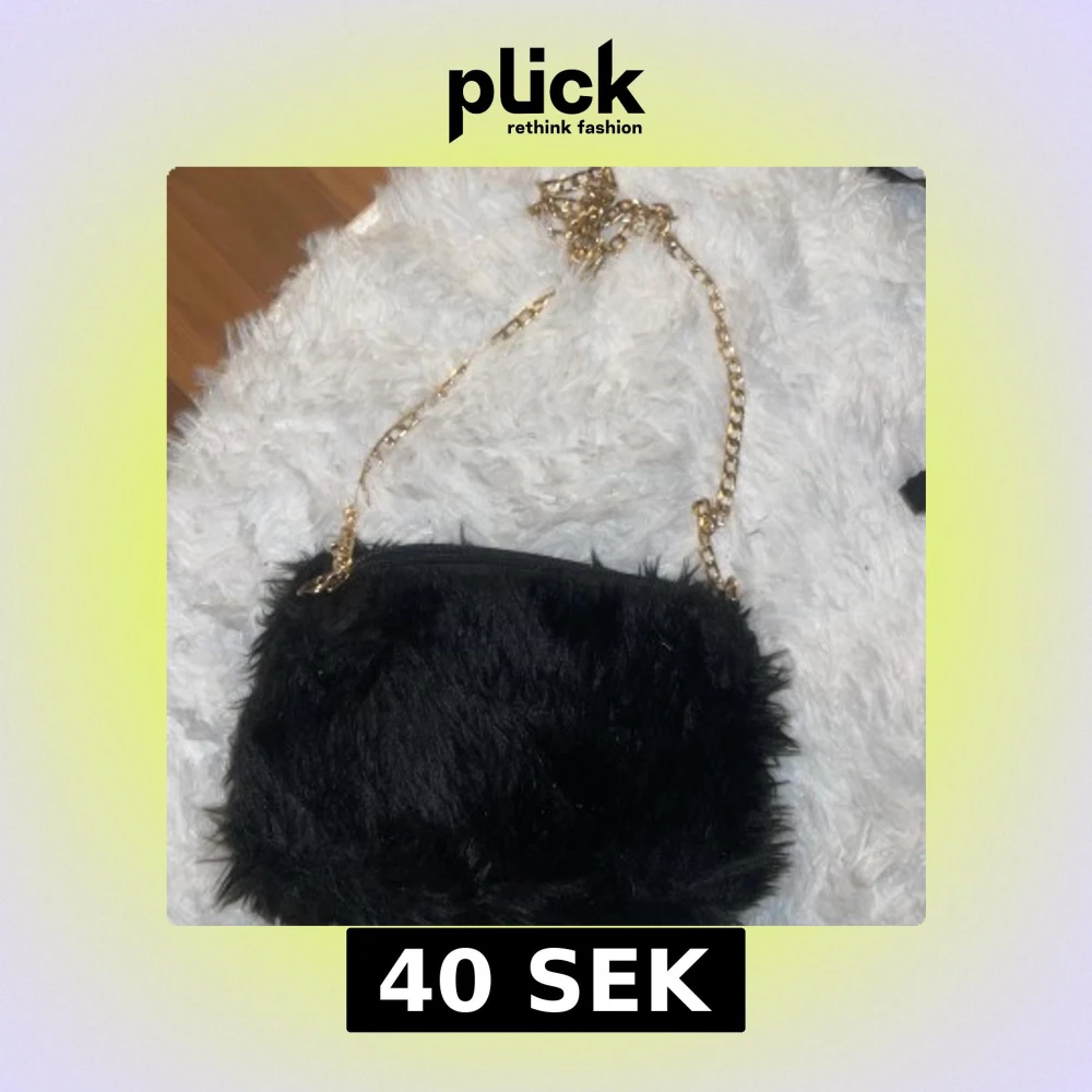 Svart fluffig axelväska med guldkedja