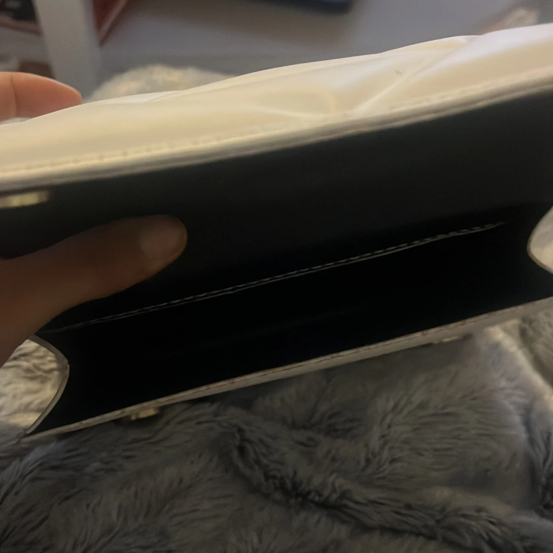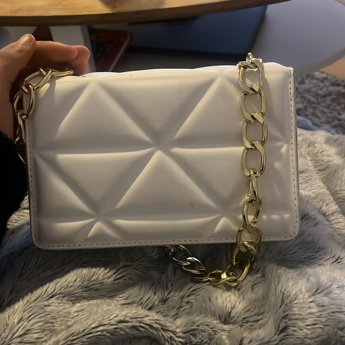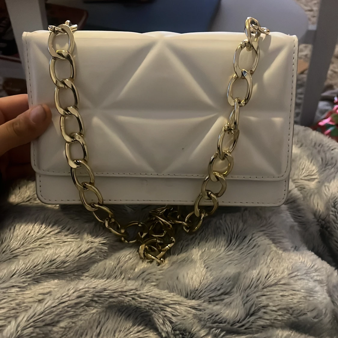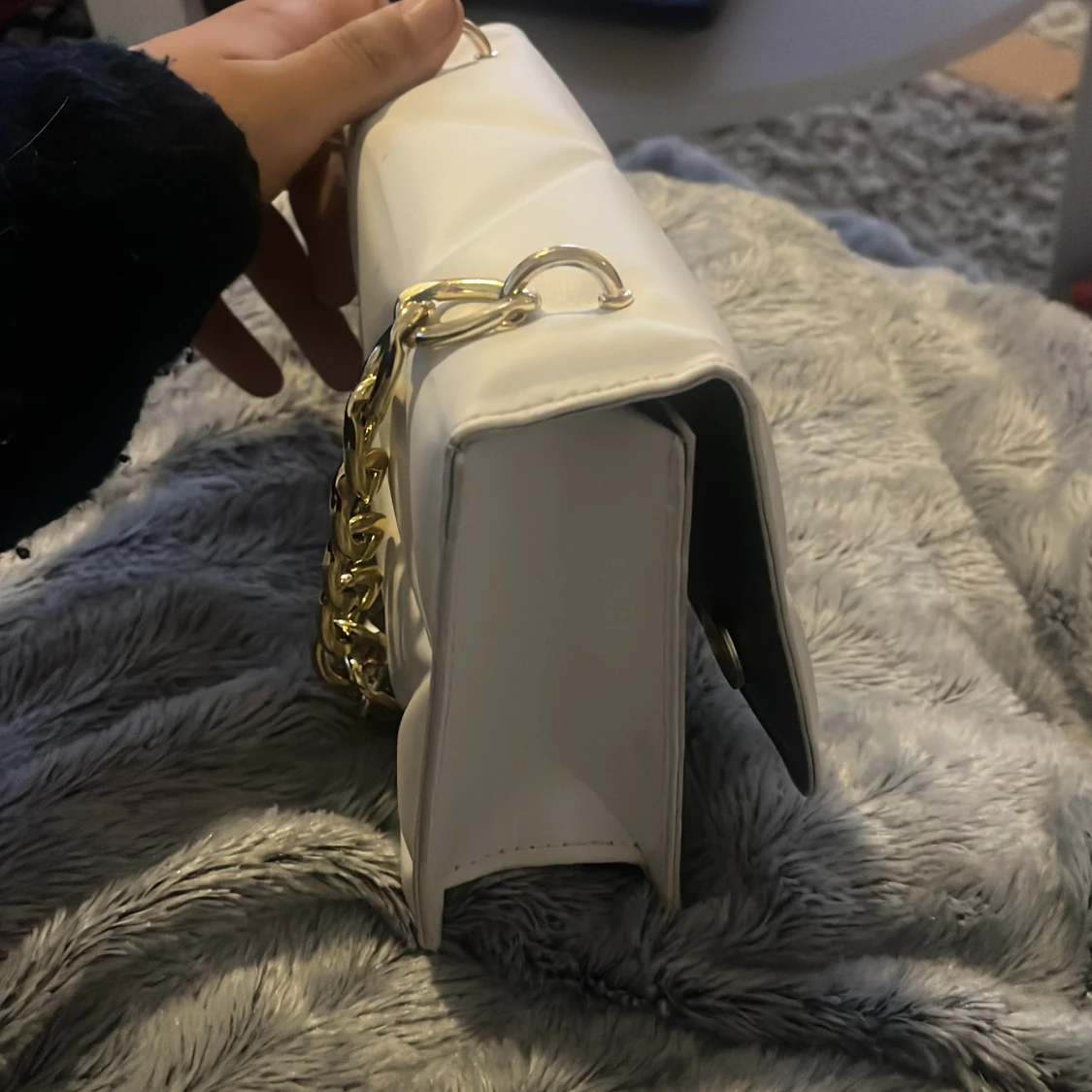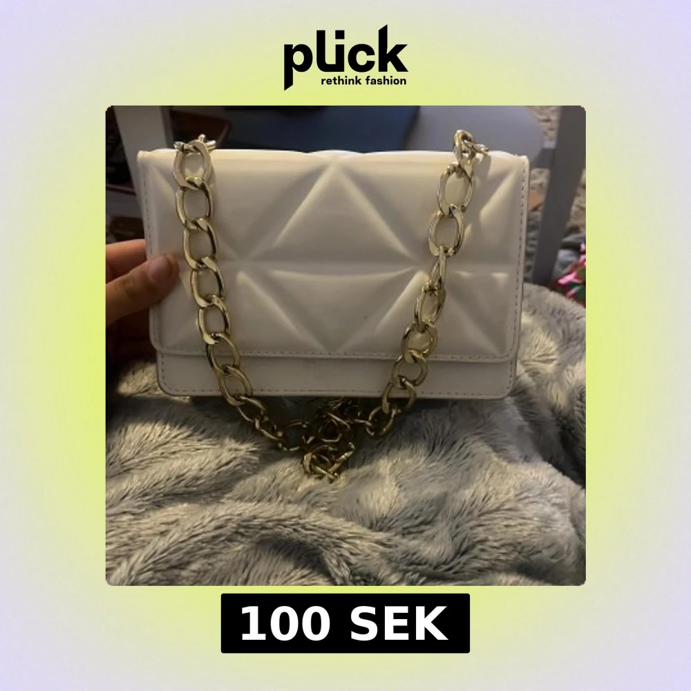Snygg vit axelväska med guldkedja brukar aldrig använda inga fläckar svart inuti 💞