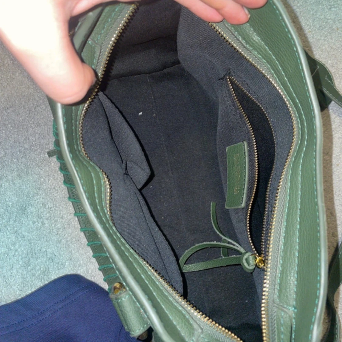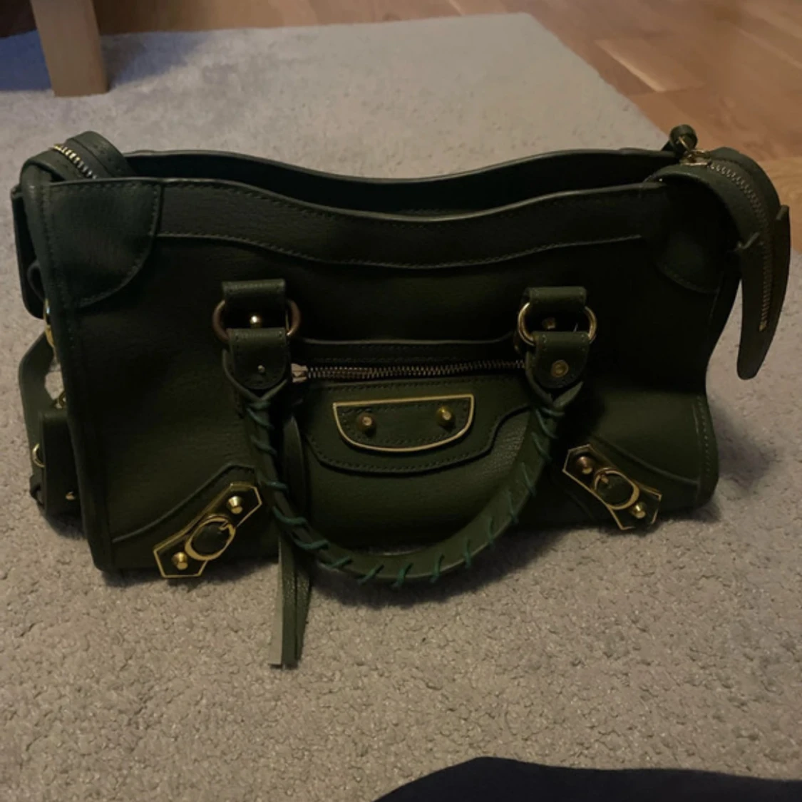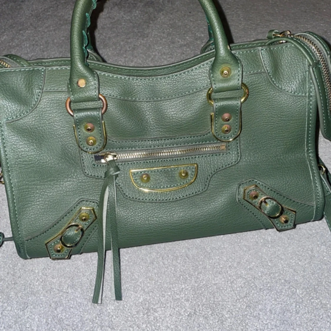 Säljer grön handväska. Använd 2 gånger. Rostet på framsidan var redan där när jag köpte den. Säljer för 700kr