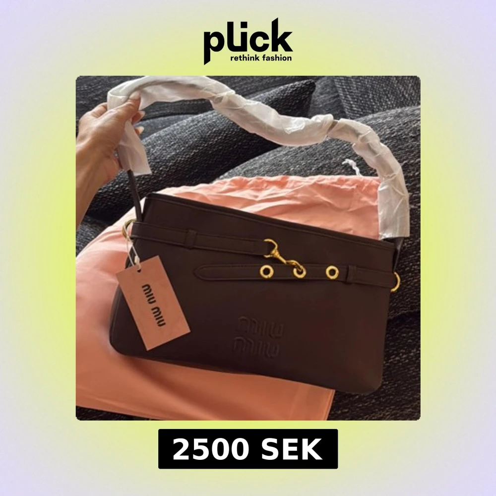 Snygg brun axelväska från Miu Miu med guldfärgade metalldetaljer och präglad logga framtill. Väskan har en stilren, rektangulär form och är tillverkad i skinn. Levereras med original dustbag i rosa och etikett. Perfekt för dig som gillar lyxiga accessoarer.