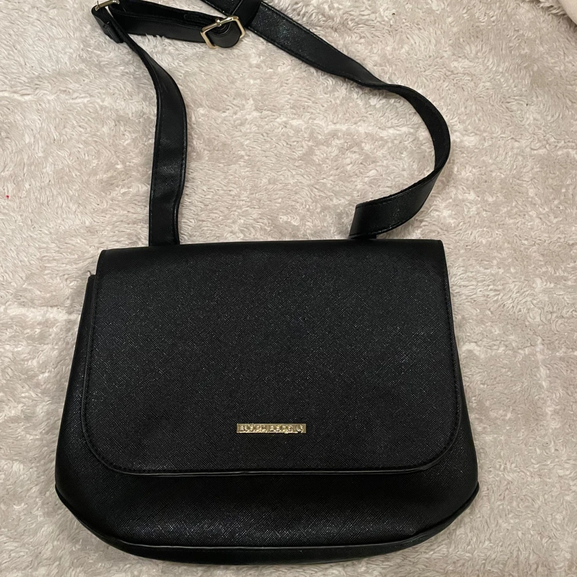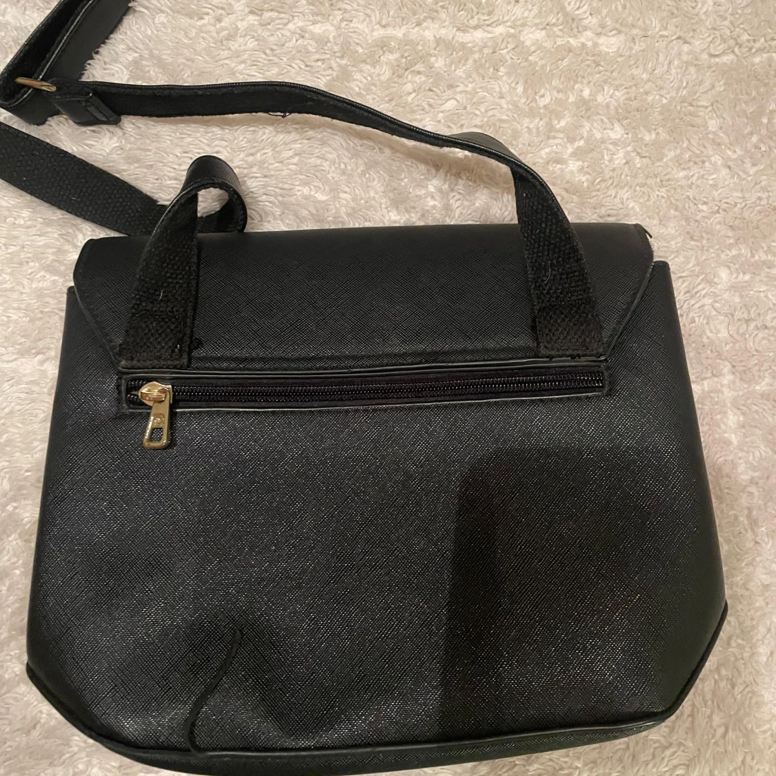 Snygg svart axelväska. Väskan har en justerbar axelrem och en praktisk dragkedja på baksidan. Perfekt för att bära dina dagliga nödvändigheter med stil.