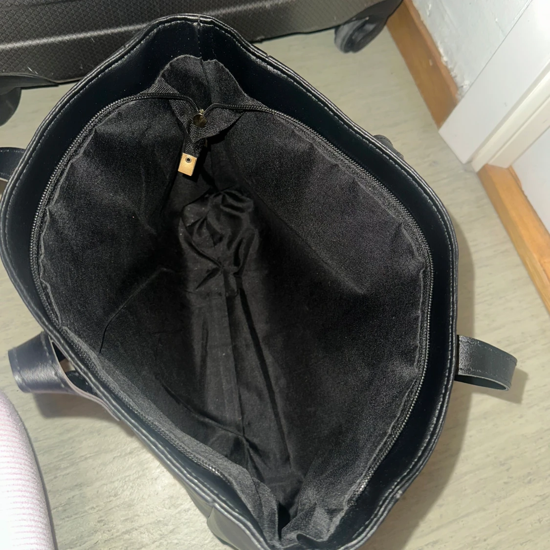 Snygg och praktisk svart axelväska i syntetmaterial. Väskan har långa handtag och en rymlig insida med dragkedja för säker förvaring. Perfekt för vardagsbruk och passar till många olika outfits.