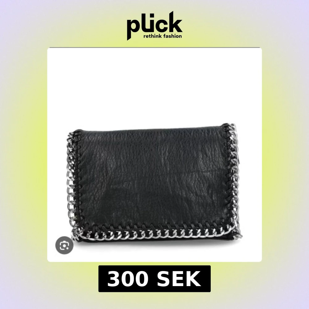 Cool svart axelväska i skinn med grov silverfärgad kedja runt kanterna och som axelrem. Väskan har en mjuk, lite rynkad struktur och en stilren, rektangulär form. Perfekt för dig som gillar edgy detaljer och vill sticka ut.