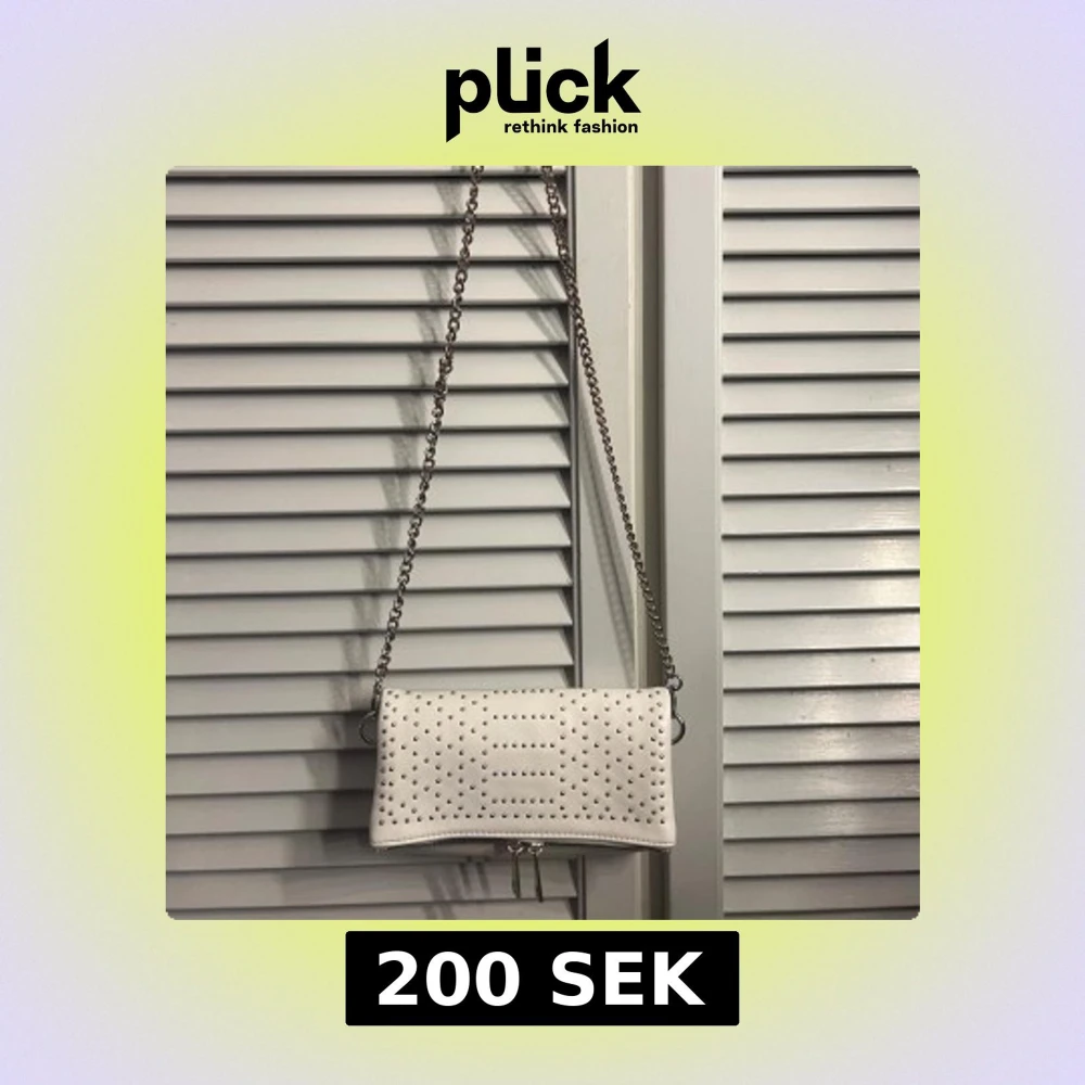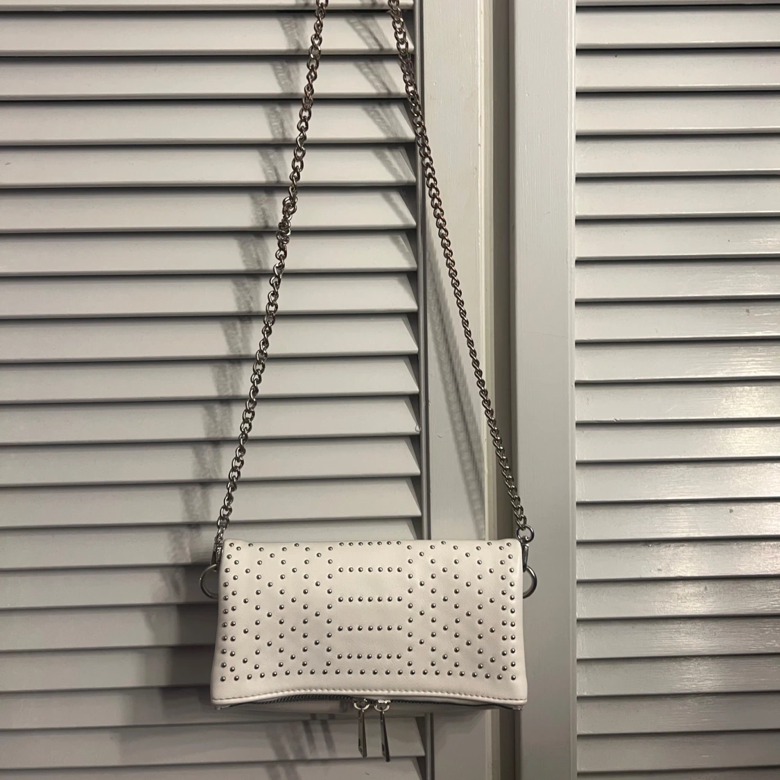 Snygg vit axelväska med silverfärgade nitar och kedja.