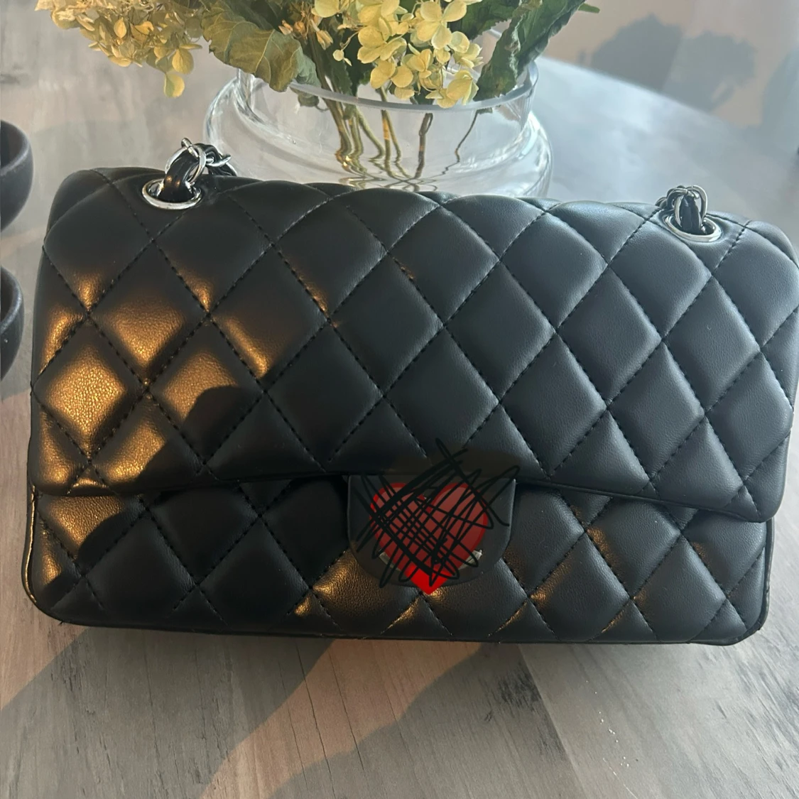 Snygg svart axelväska i quiltad design med silverfärgad kedjerem. Väskan är tillverkad i skinn och har ett klassiskt rutmönster. Perfekt storlek för det viktigaste och ger en stilren vibe till din outfit.