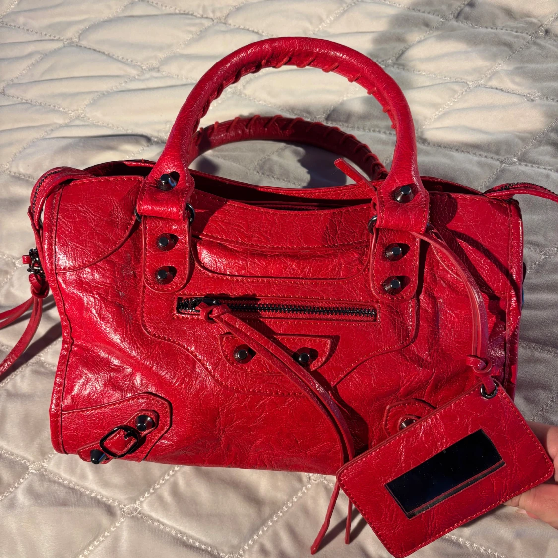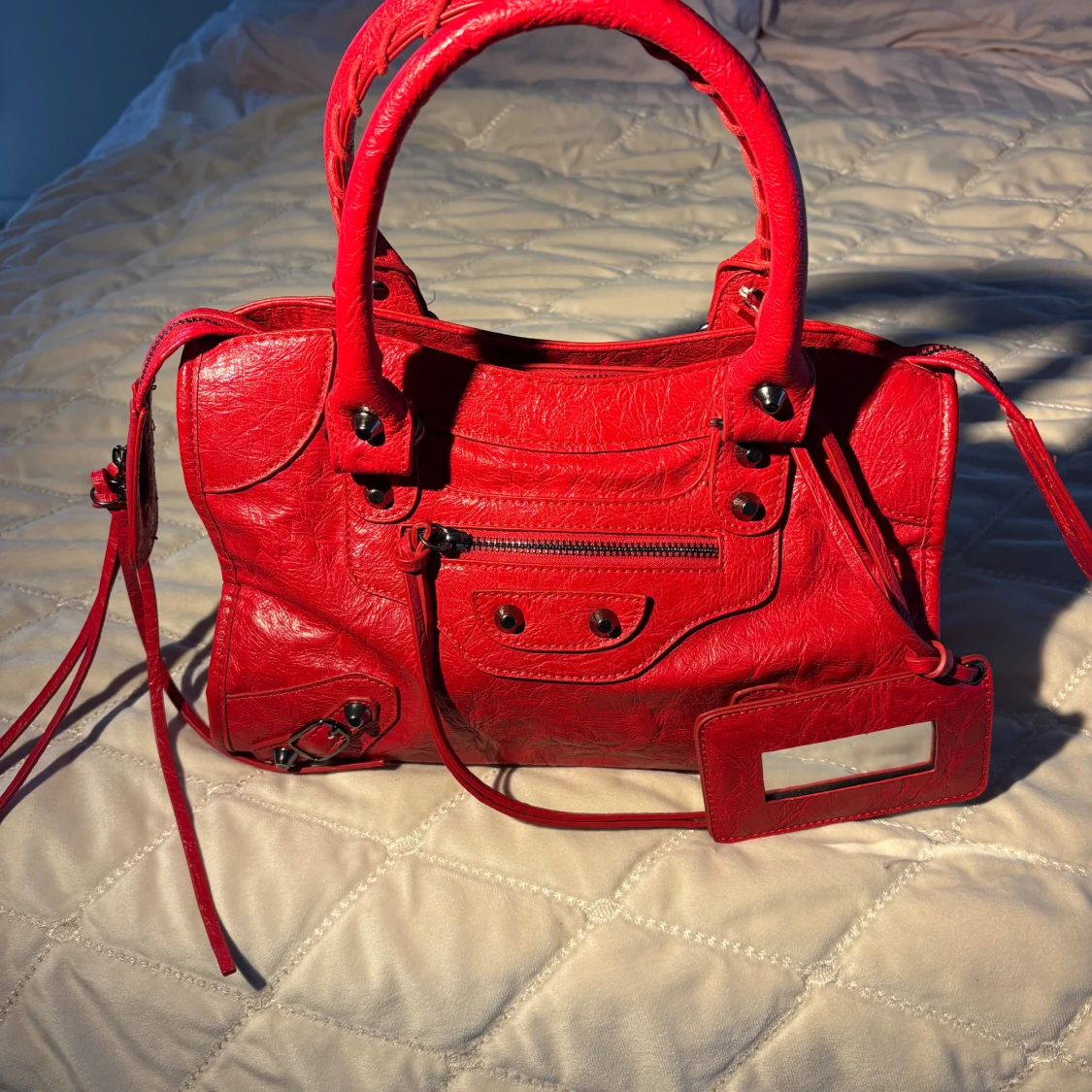 Säljer min röda skinnväska har använts fåtal gånger. Kan diskutera pris vid snabb affär.