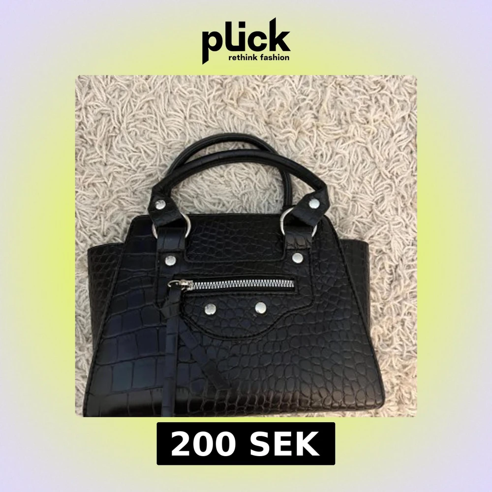 Svart handväska i krokodilmönster - Snygg svart handväska med krokodilmönster och praktiska handtag. Stilren och elegant design som passar till många tillfällen. Köpt på Sellpy helt ny och den har använts fåtal gånger av mig!