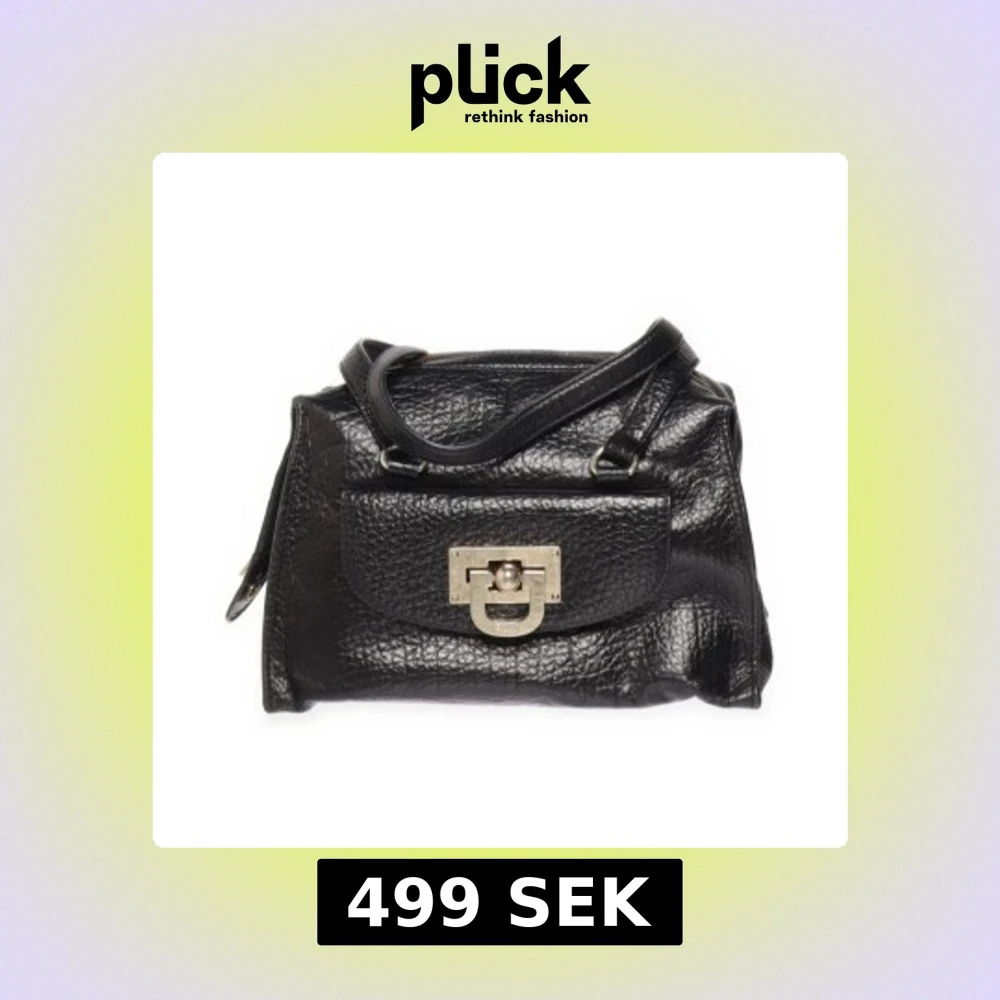 Säljer en svart handväska i äkta skinn med snygg struktur och silverfärgat spänne framtill. Väskan har dubbla handtag och dragkedja på sidorna. Perfekt för dig som vill ha en stilren och klassisk accessoar.