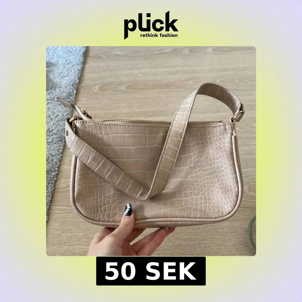 Snygg beige axelväska med crocopräglat mönster och guldfärgade detaljer. Väskan har en bred axelrem och stängs med dragkedja upptill. Insidan har ett mindre fack med dragkedja för småsaker. Perfekt storlek för det viktigaste.