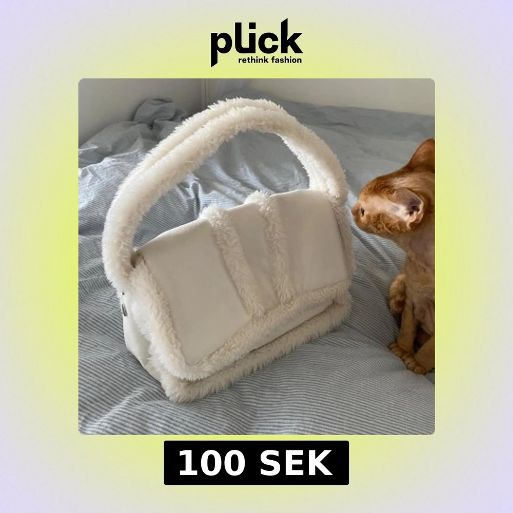 Säljer en supermjuk och fluffig vit handväska. Den är rymlig nog för dina dagliga nödvändigheter. Katt med för storleksreferens lol;)