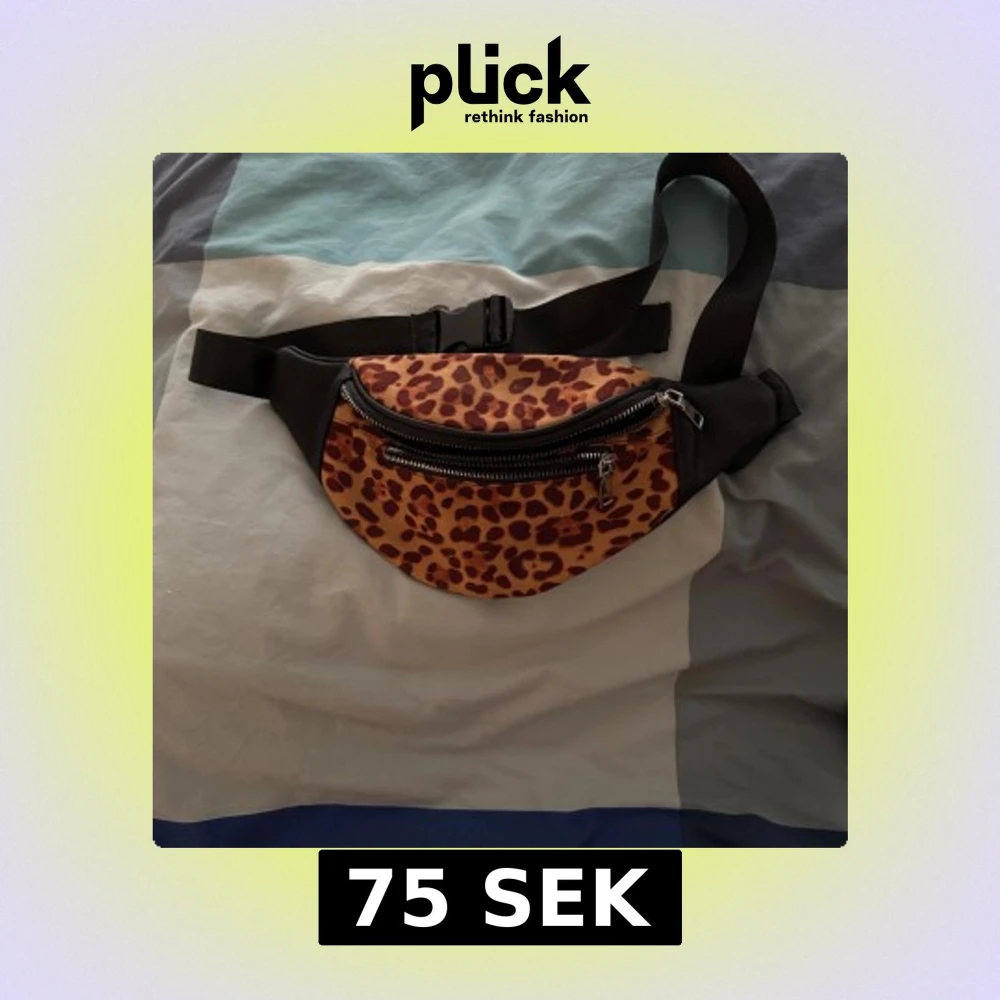 Cool midjeväska med leopardmönster i brunt och svart. Väskan har en bred svart rem med spänne och två dragkedjor framtill för smidig förvaring. Perfekt att ha runt midjan eller över axeln för en trendig look.