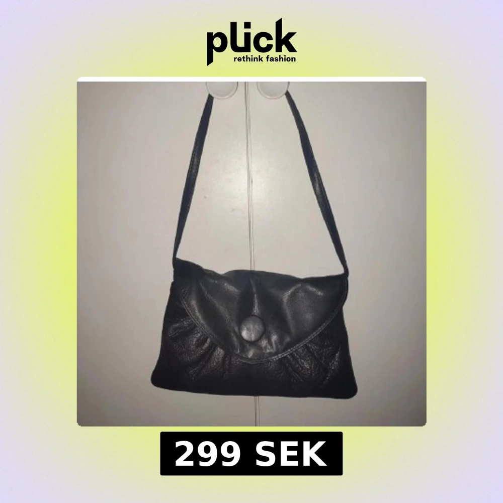 Snygg svart axelväska i mjukt skinn med lock och stor knapp framtill. Väskan har en enkel, klassisk design med lätt rynkade detaljer på framsidan och en lång axelrem. Perfekt för att bära det viktigaste när du är på språng.