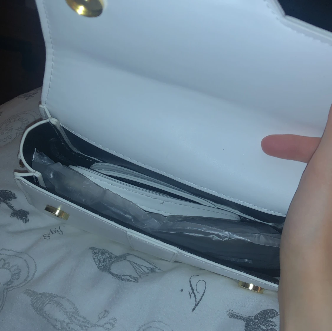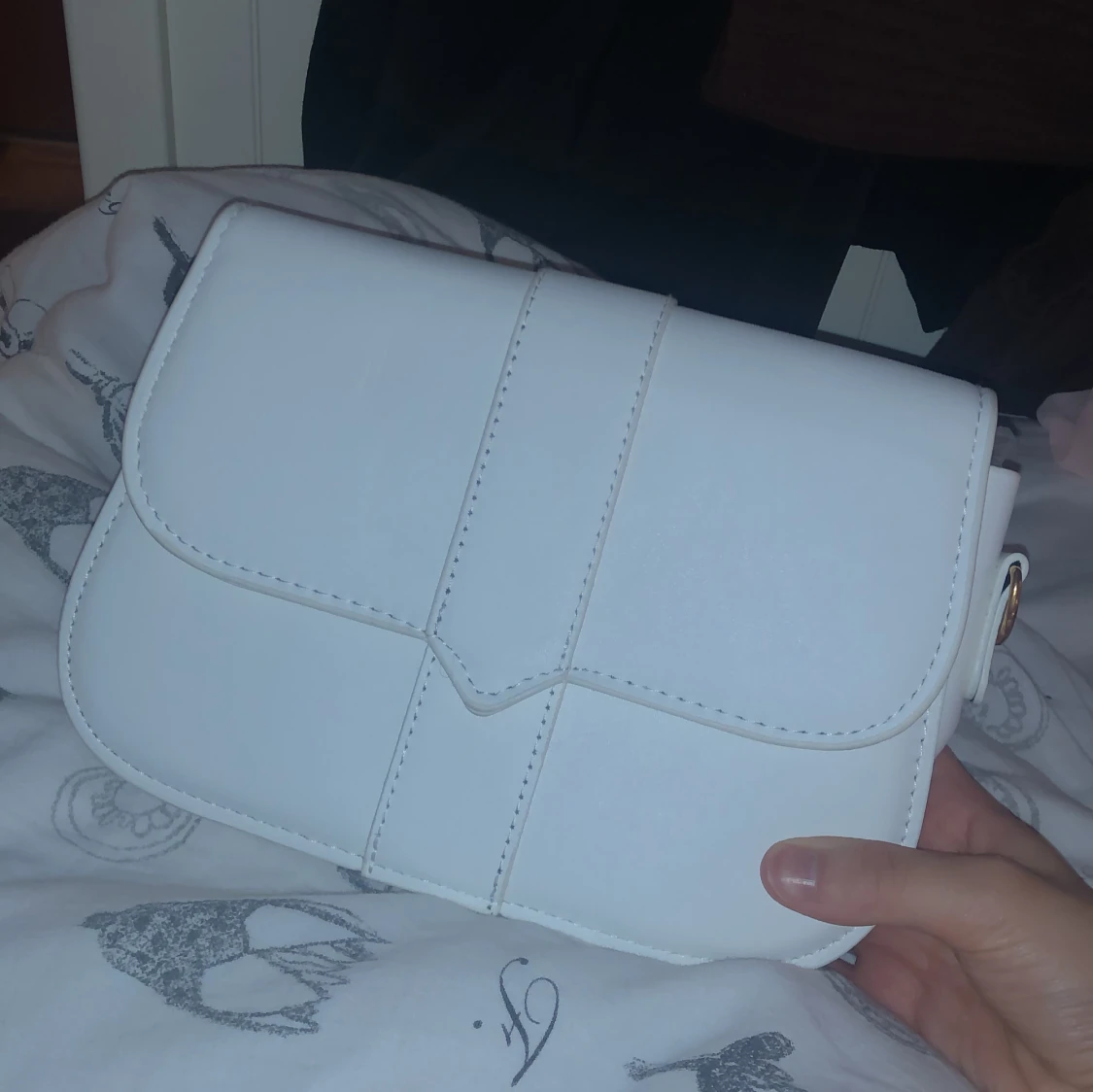 fin vit axelväska, axelband följer med! Väskan kommer knte till anvöndning då jag var många andra vita väskor. Väskan levererades till mig med små defekter därav priset.