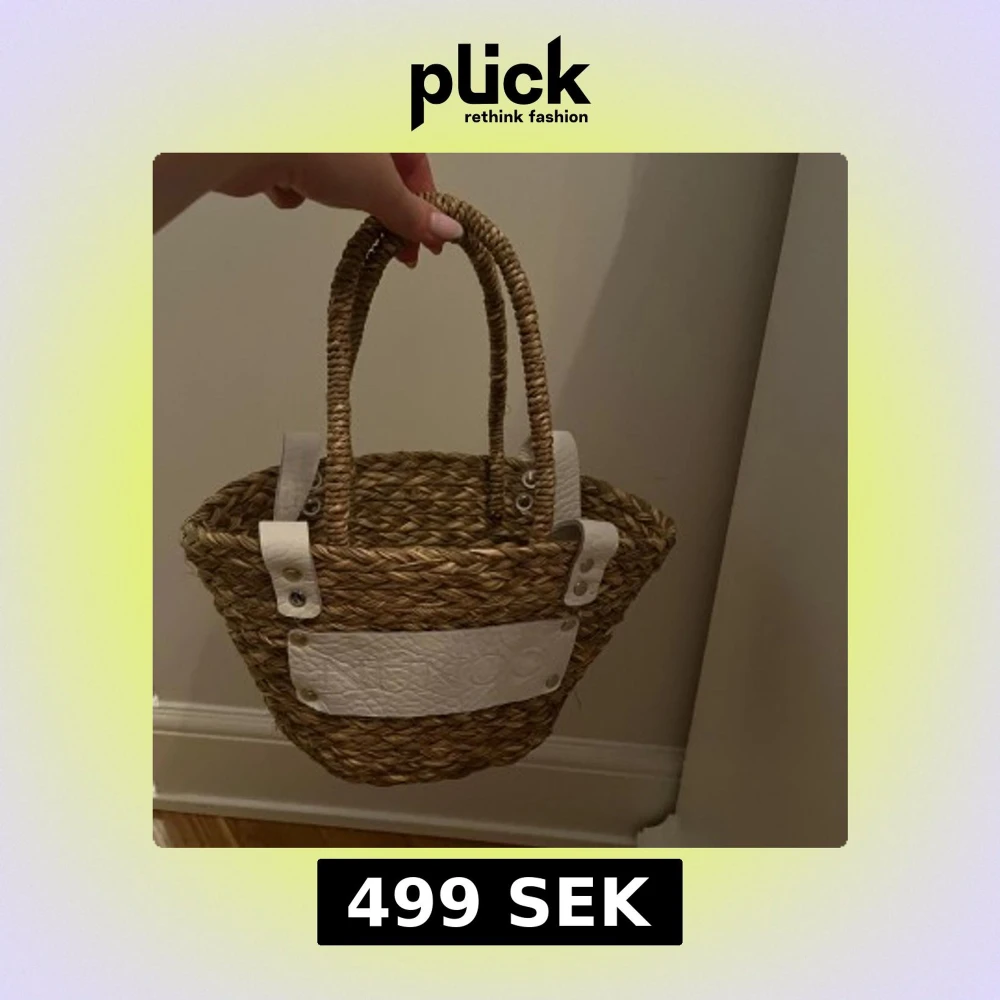 SÅ fin stråväska/beach-bag från Núnoo med vita läderdetaljer och handtag. Väskan är i nyskick då den enbart är använd ett fåtal gånger!