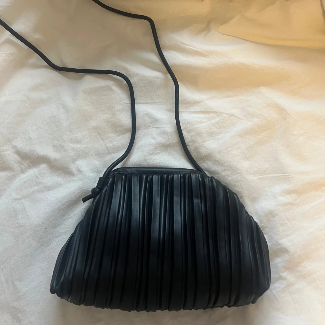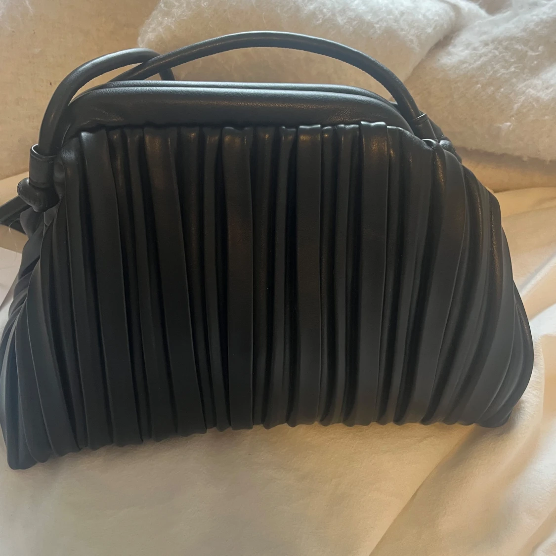 Svart axelväska med plisserad design