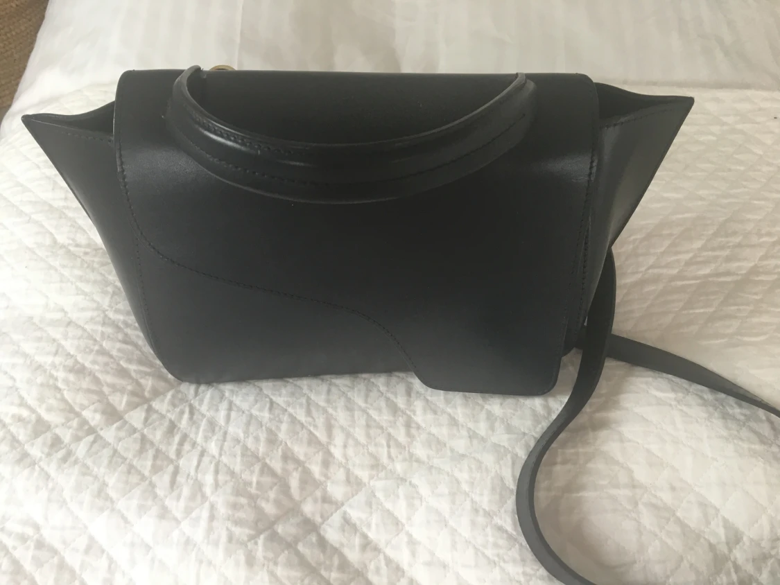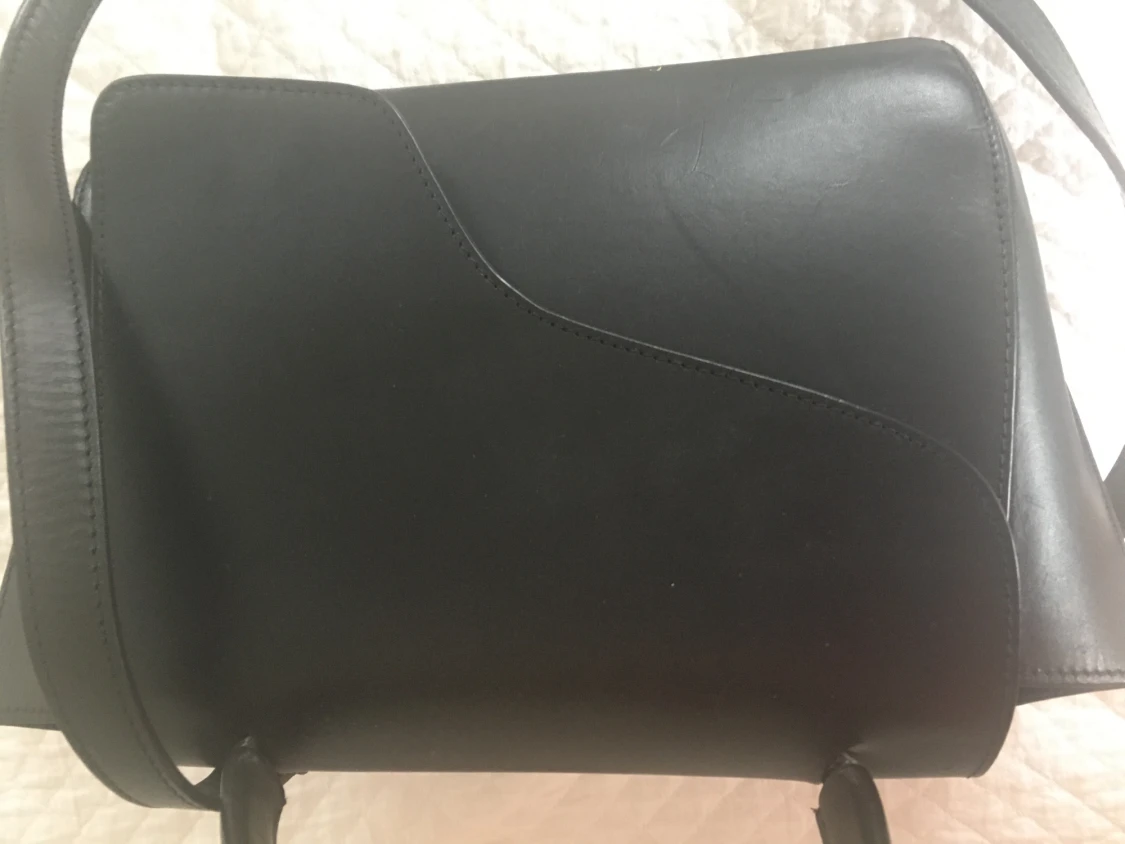 Väskan har varit i min ägo I ca 5 månader och är i mycket bra skick. Det finns en del lättare rynkor I lädret men ingen större.
