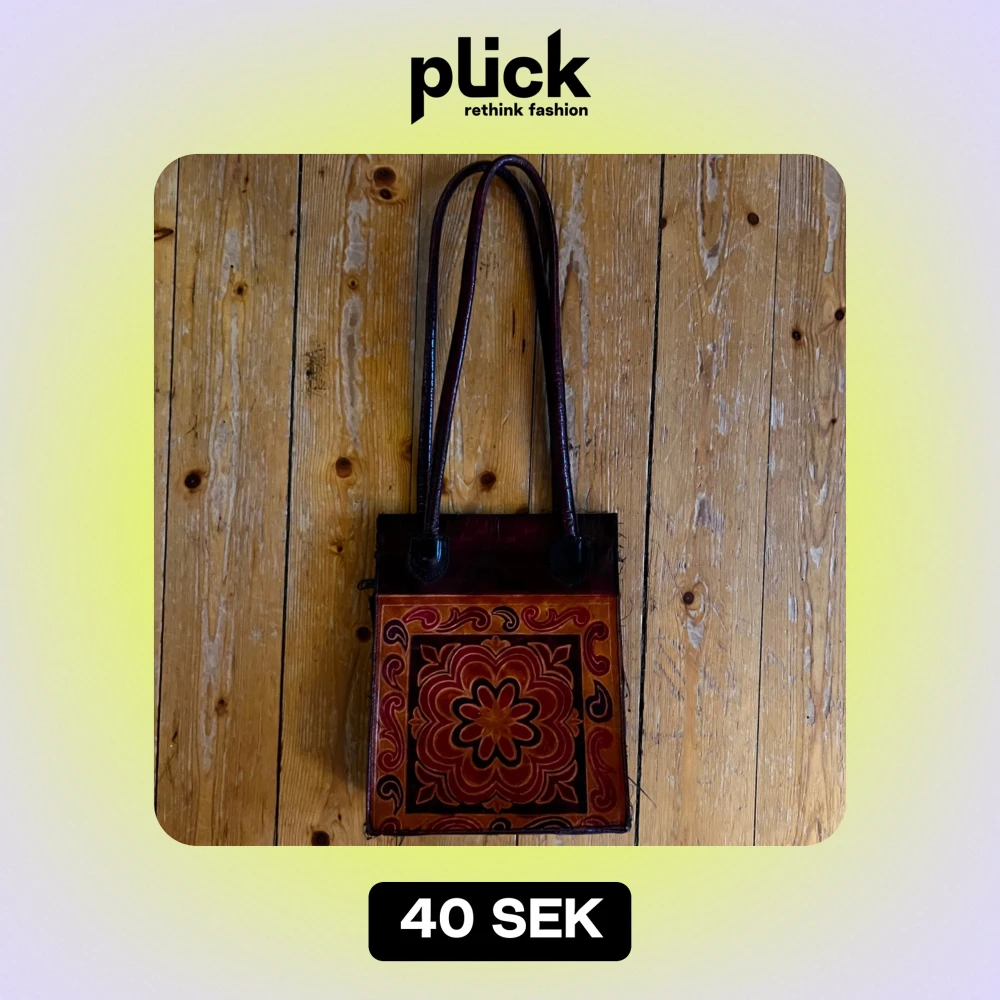 Säljer en unik vintage axelväska i skinnmaterial med ett vackert blommönster i rött och orange. Väskan har långa handtag och en praktisk dragkedja upptill. Har en ficka på utsidan med knapp, och en ficka på insidan med dragkedja. Perfekt för höst och vår, och ger en bohemisk touch till din outfit. Passar både till vardags och speciella tillfällen. Köparen står för frakt, skickar spårtbart PostNord paket.