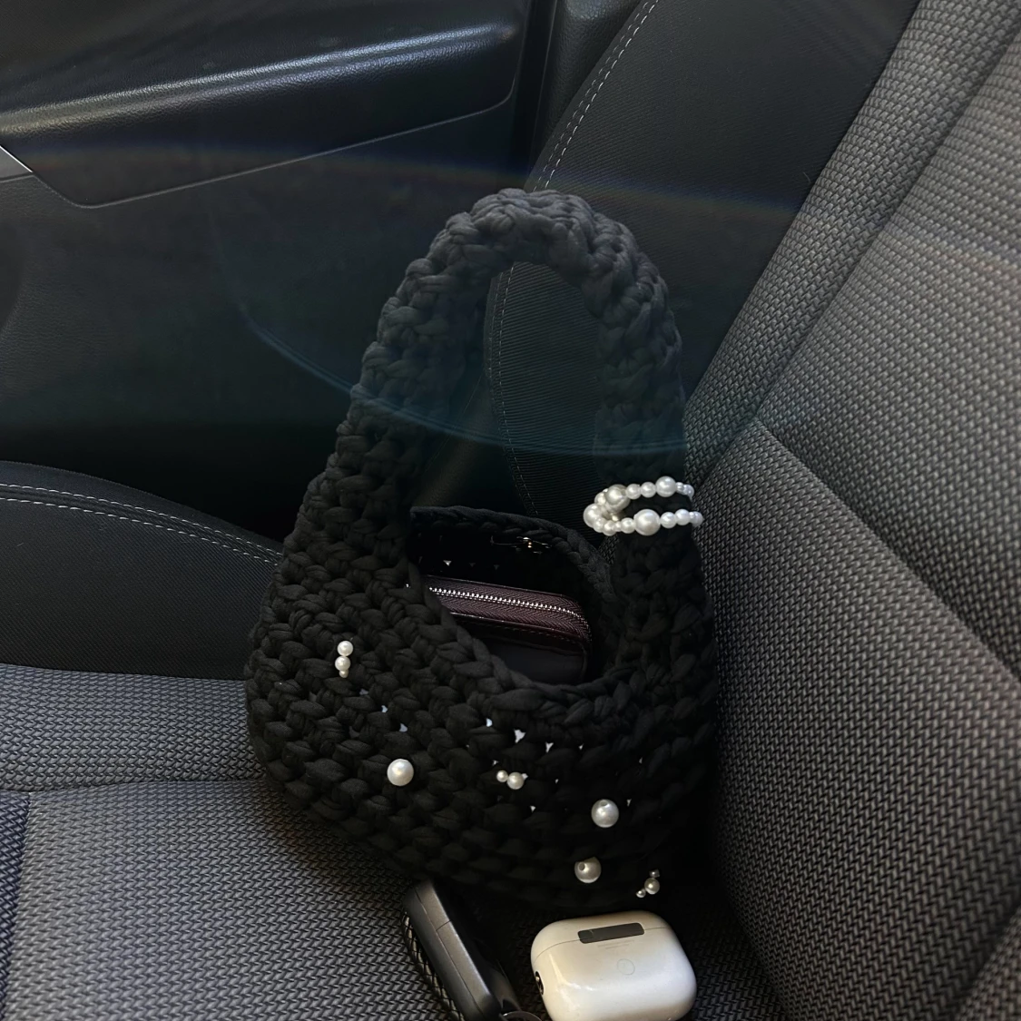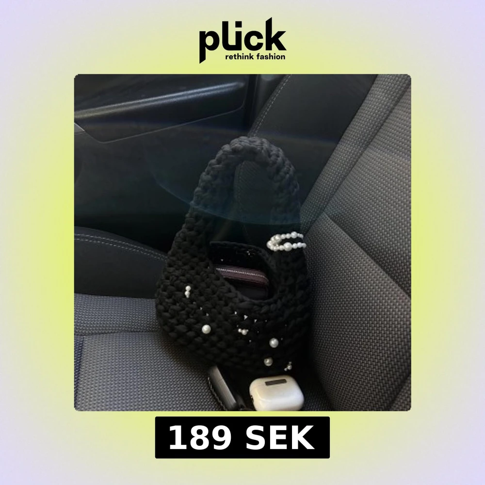 Unik svart handväska från Hooked by Tilda! Väskan har creme vita glansiga pärlor och har en gullig knappfäste! Mått: 10x22x26 Pris: 169kr Är du intresserad? Kika in på min Vinted för att se vad som finns till salu, eller skicka ett DM för en personliga beställningar!