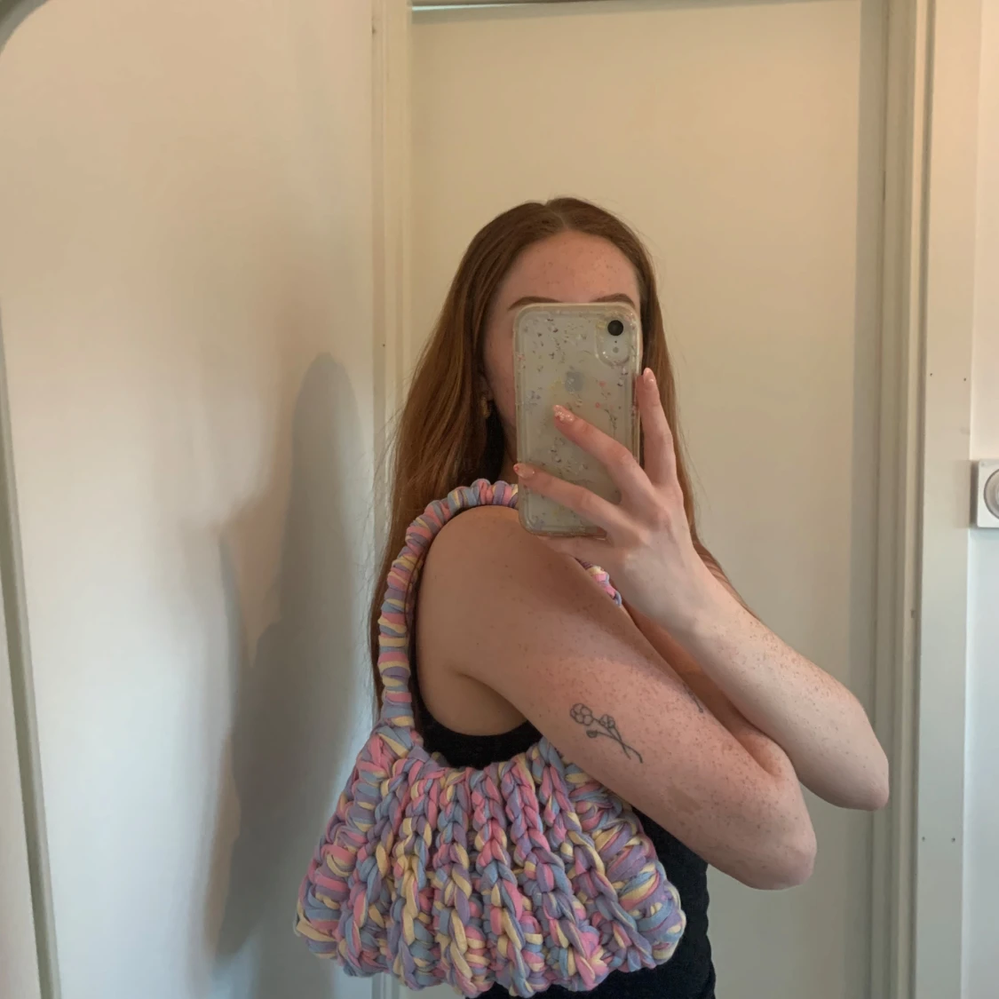 Pastellfärgad virkad axelväska