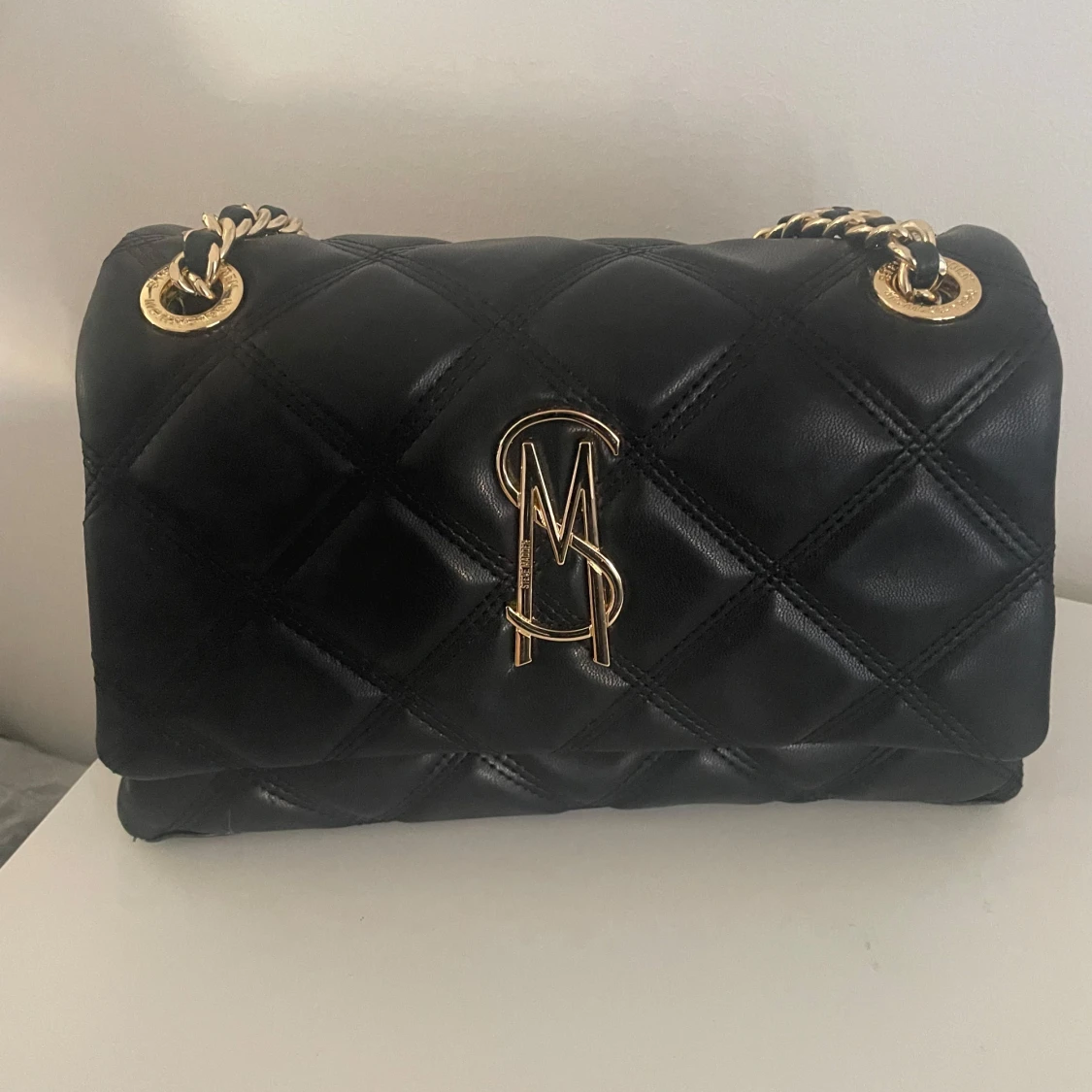 Snygg svart väska från Steve Madden med guldfärgade kedjedetaljer. Väskan har ett elegant mönster och en praktisk storlek för vardagsbruk. Säljer eftersom den inte kommer till använding!💓 inga defekter! Säljer för 650 men pris kan diskuteras!