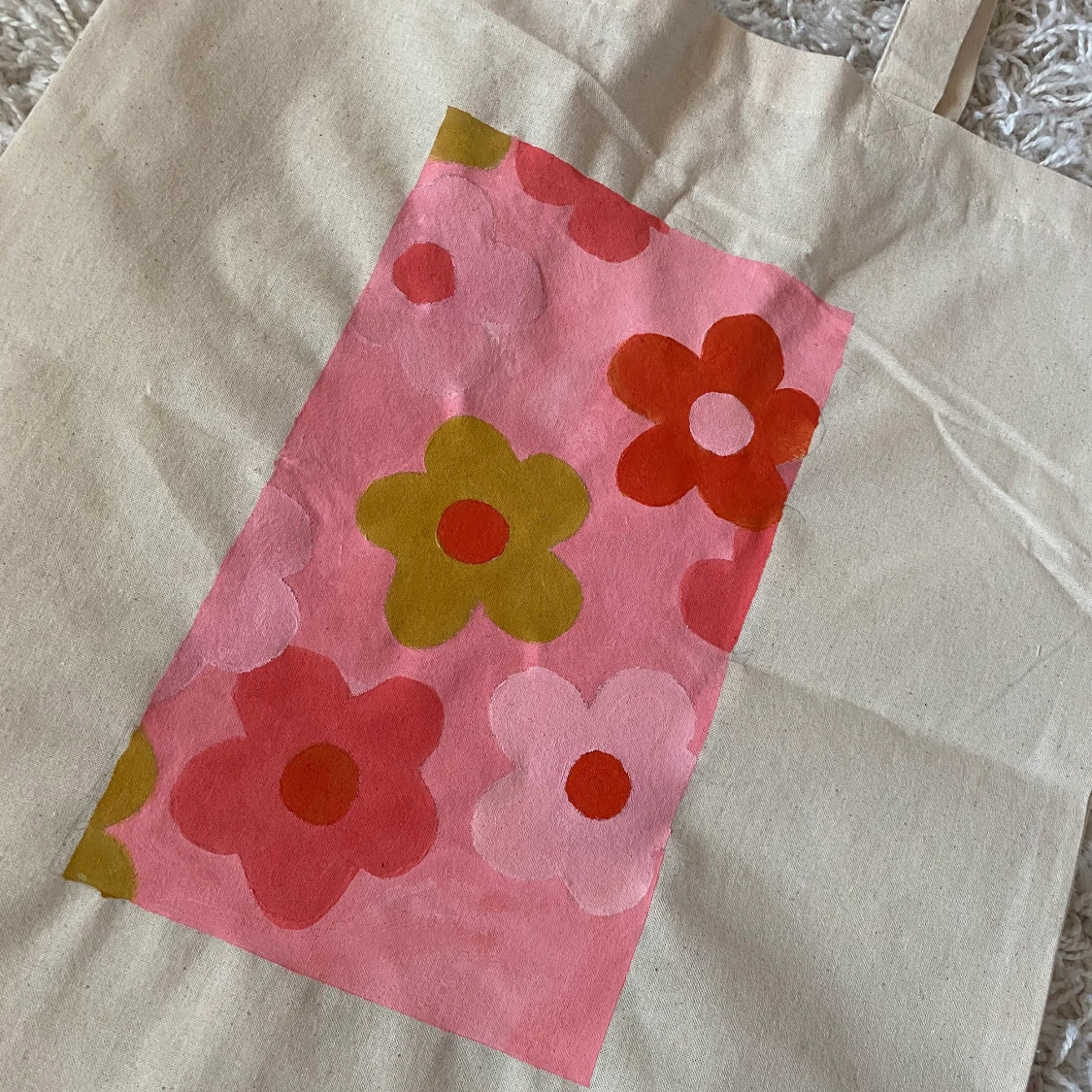 En handmålad tygväska i retro-inspirerat mönster. Skickas som brev på posten 💗