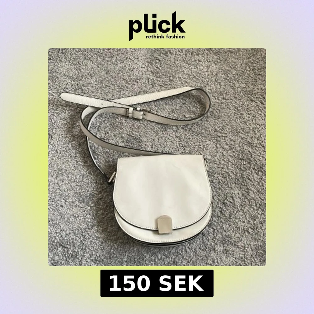Snygg vit axelväska i skinn med rundad form och justerbart axelband. Väskan har ett stilrent silverfärgat spänne framtill och minimalistisk design som passar till många outfits.